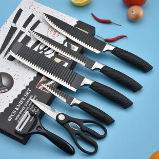 | Faca de cozinha antiaderente com listras onduladas e lâmina preta, conjunto de 6 peças para presente, faca de cozinha para fatiar frutas em aço inoxidável |