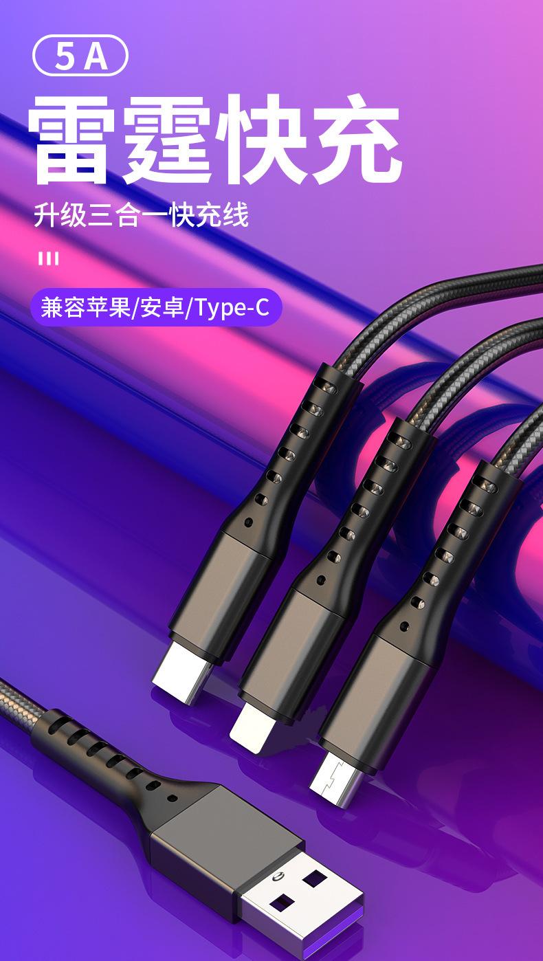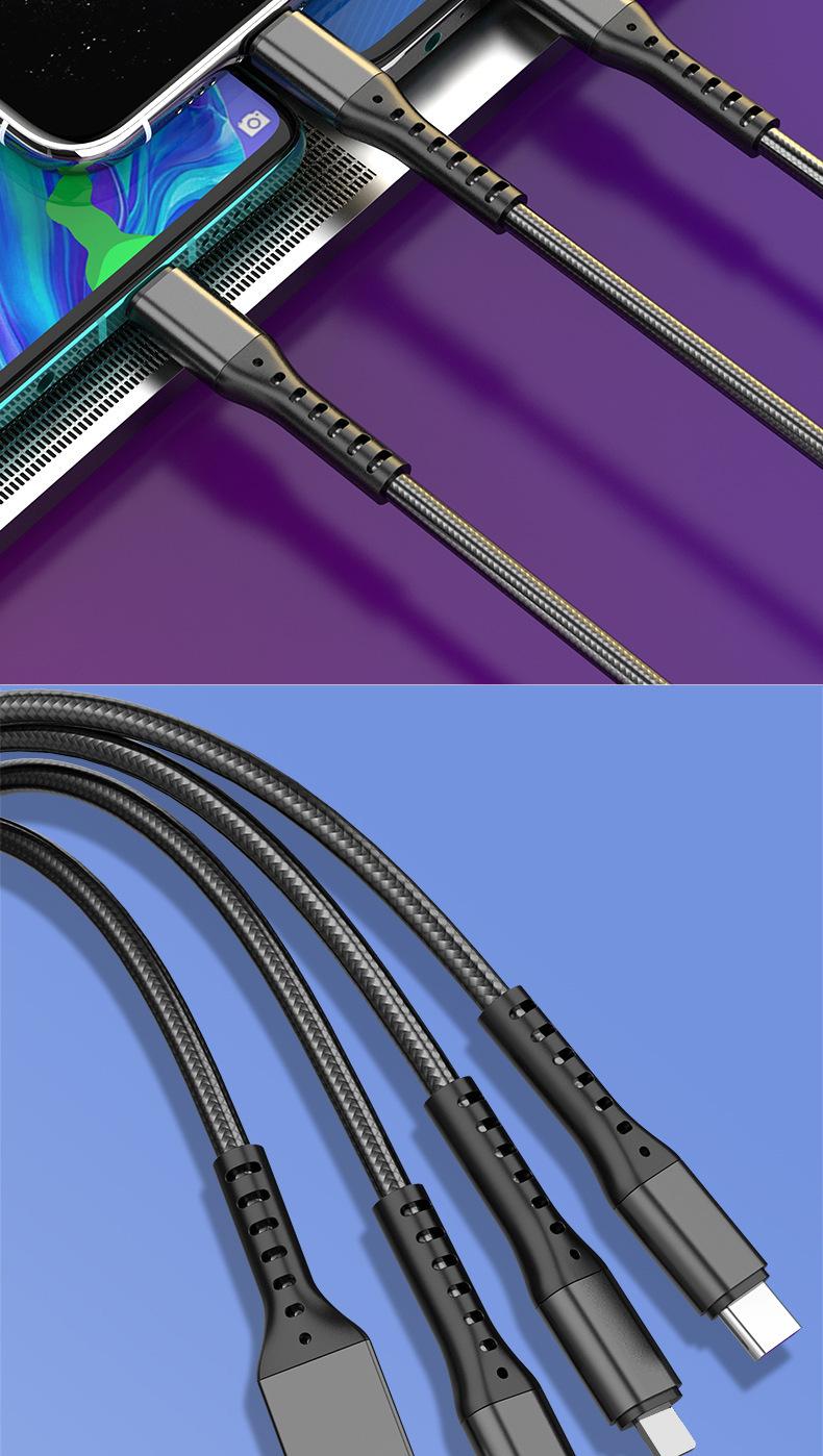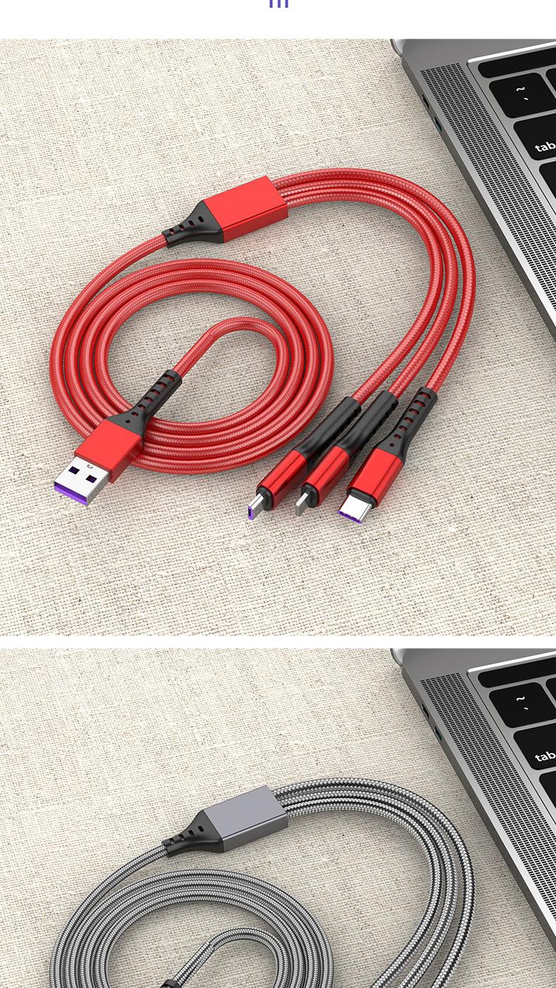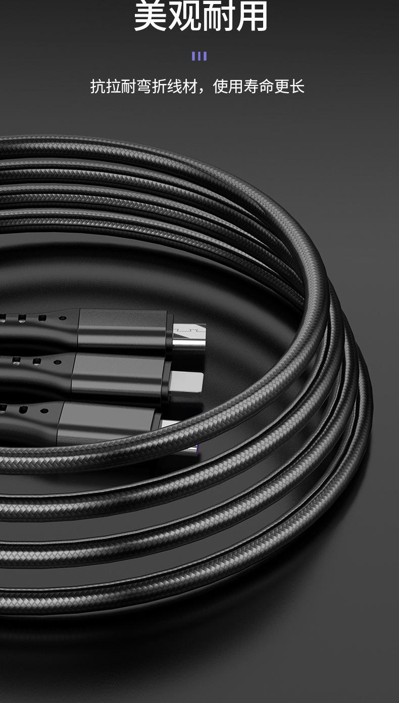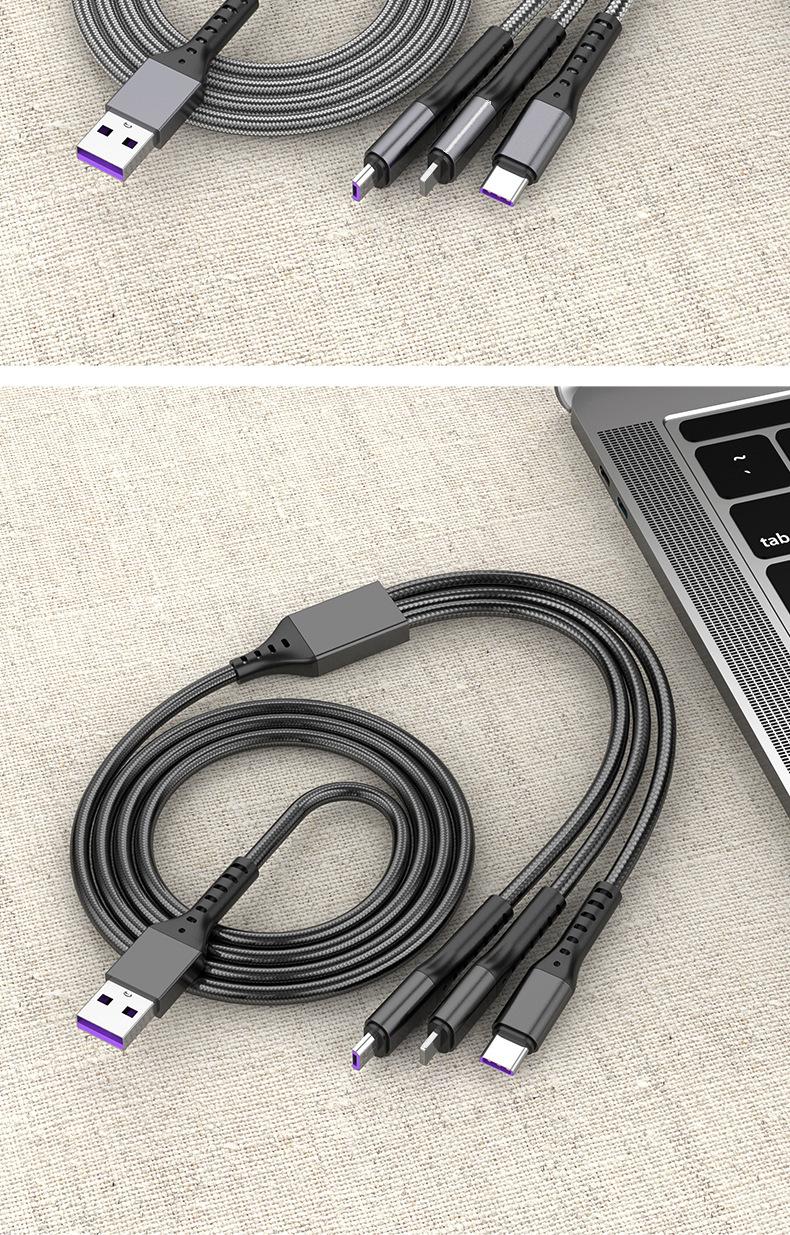 | Nuevo cable de datos de carga súper rápida de 6 A, uno a tres, cable de carga tres en uno de Apple TIPO C trenzado de tela de 100 W |