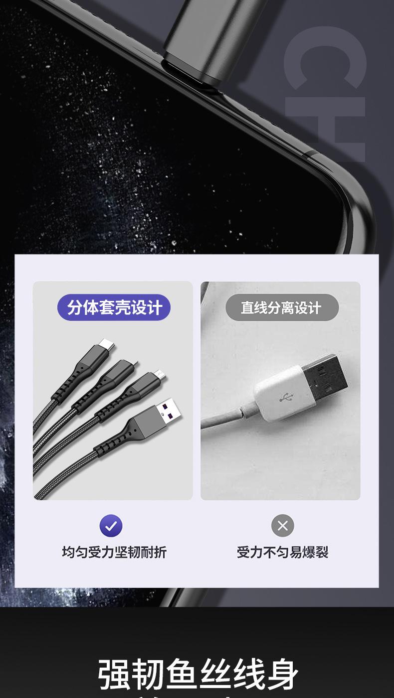 [Nombre del producto]: Cable de datos de uno a tres de Iron Man[TC con transmisión de datos, admite carga rápida]