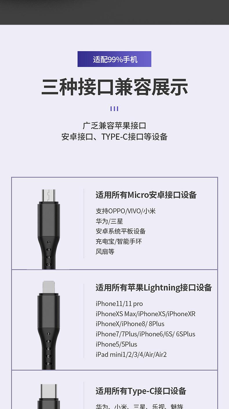 [Interfaz del producto]: Tipo-C, Android MICRO USB, interfaz de Apple(Solo se puede cargar, no admite transmisión de datos)