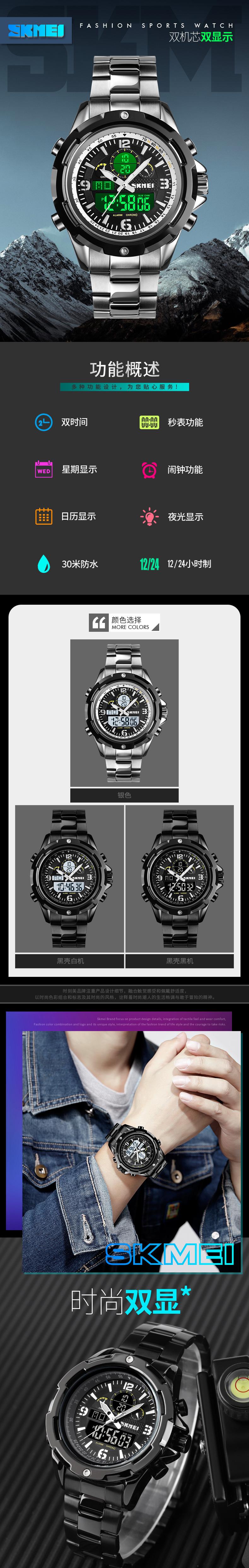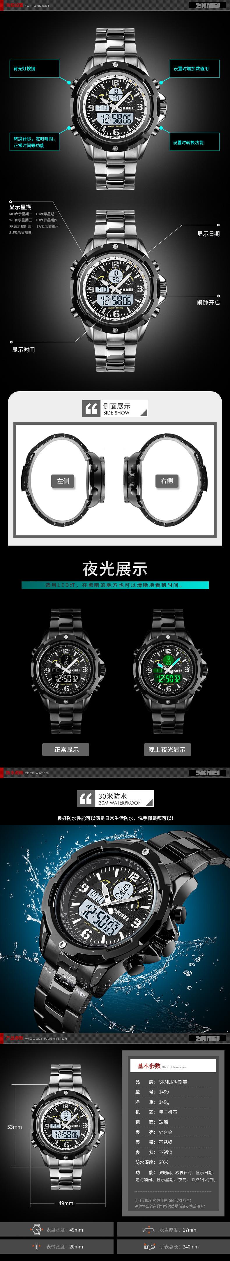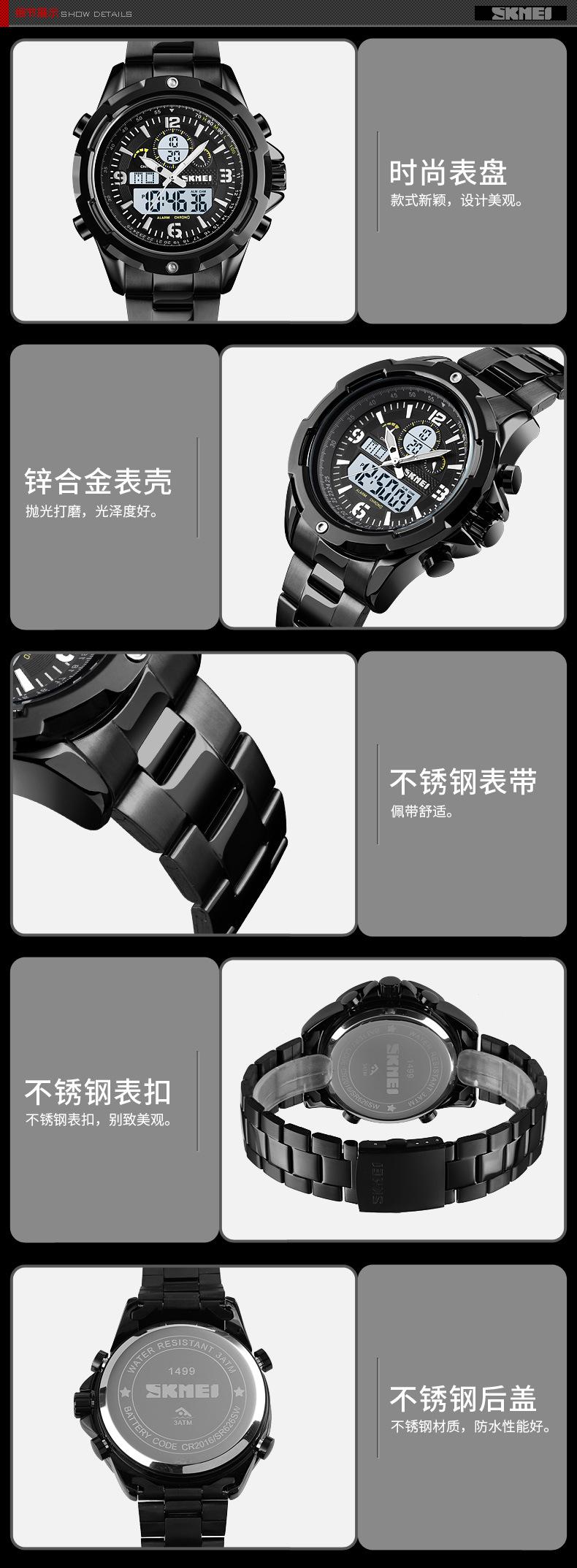 | Material | Caixa em liga de zinco, pulseira em aço inoxidável, espelho de vidro, tampa inferior em aço inoxidável, fivela em aço inoxidável |