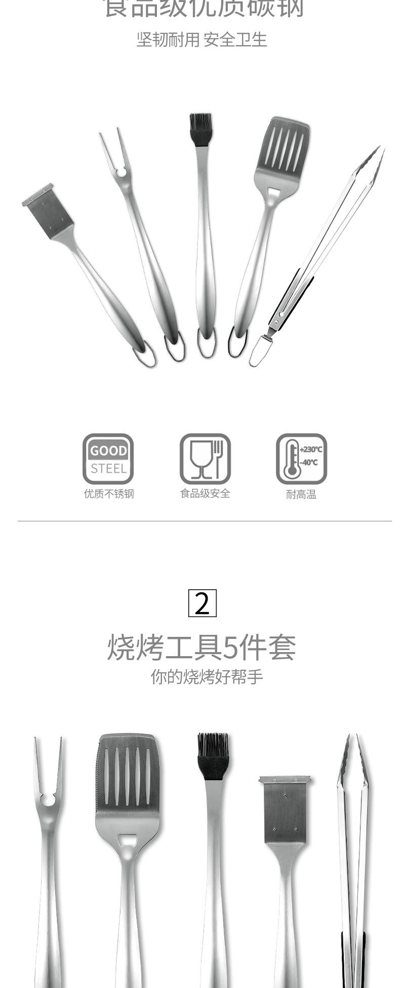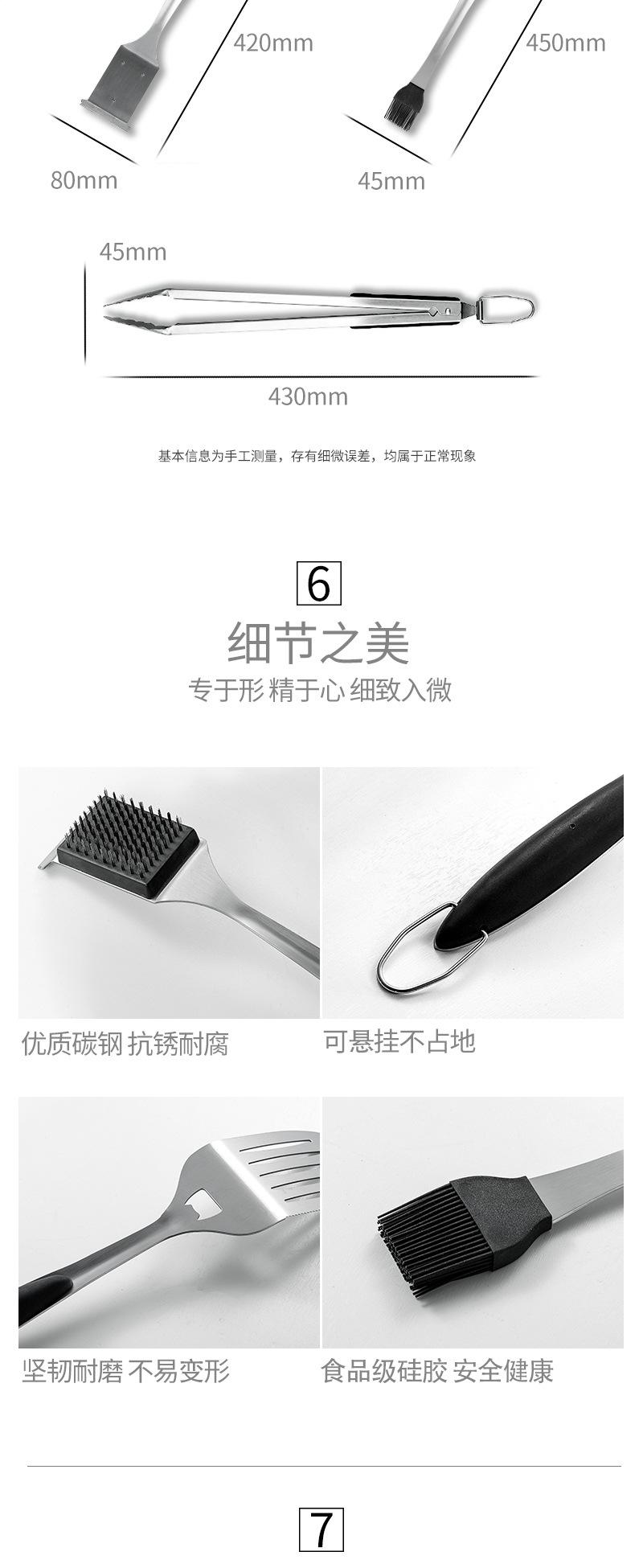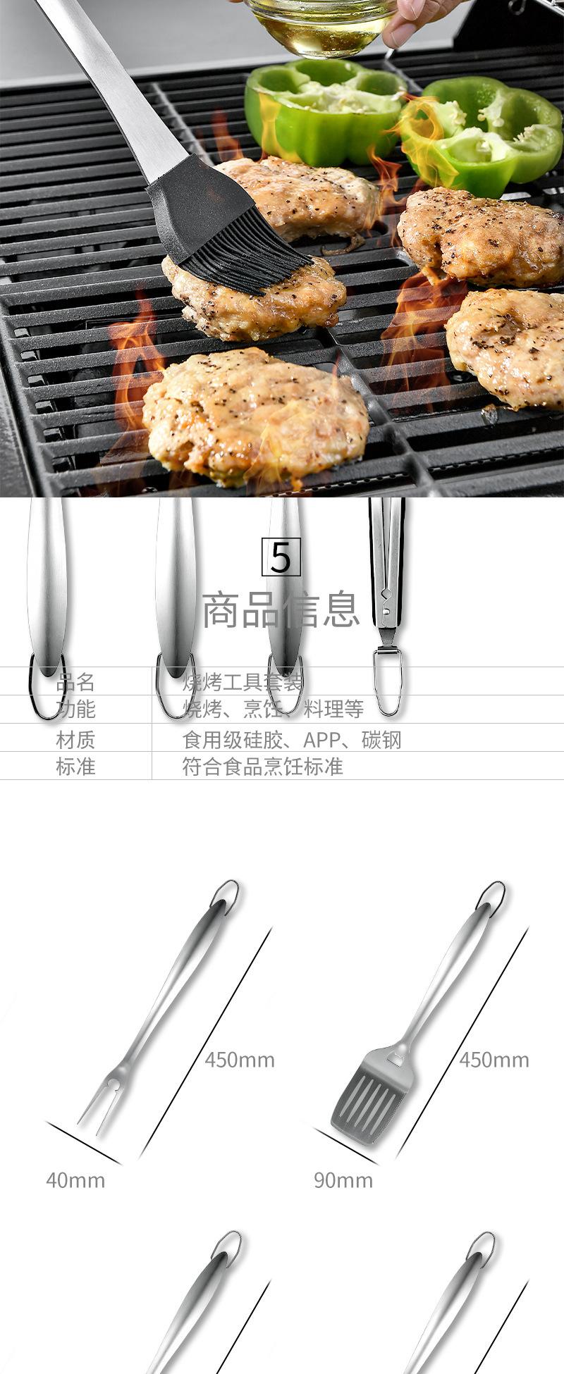 Braçadeira 207g, pá 315g, garfo 192g, escova de óleo 205g, escova de limpeza 310g
