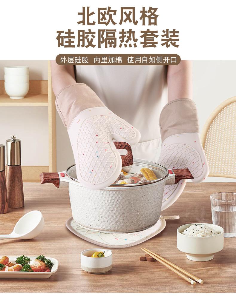 Nome: Luvas de Silicone + Algodão Pegador de Panela Isolado Conjunto Cor Sarja Bolinhas Luvas para Micro-ondas Forno Luvas para Assar Amazon