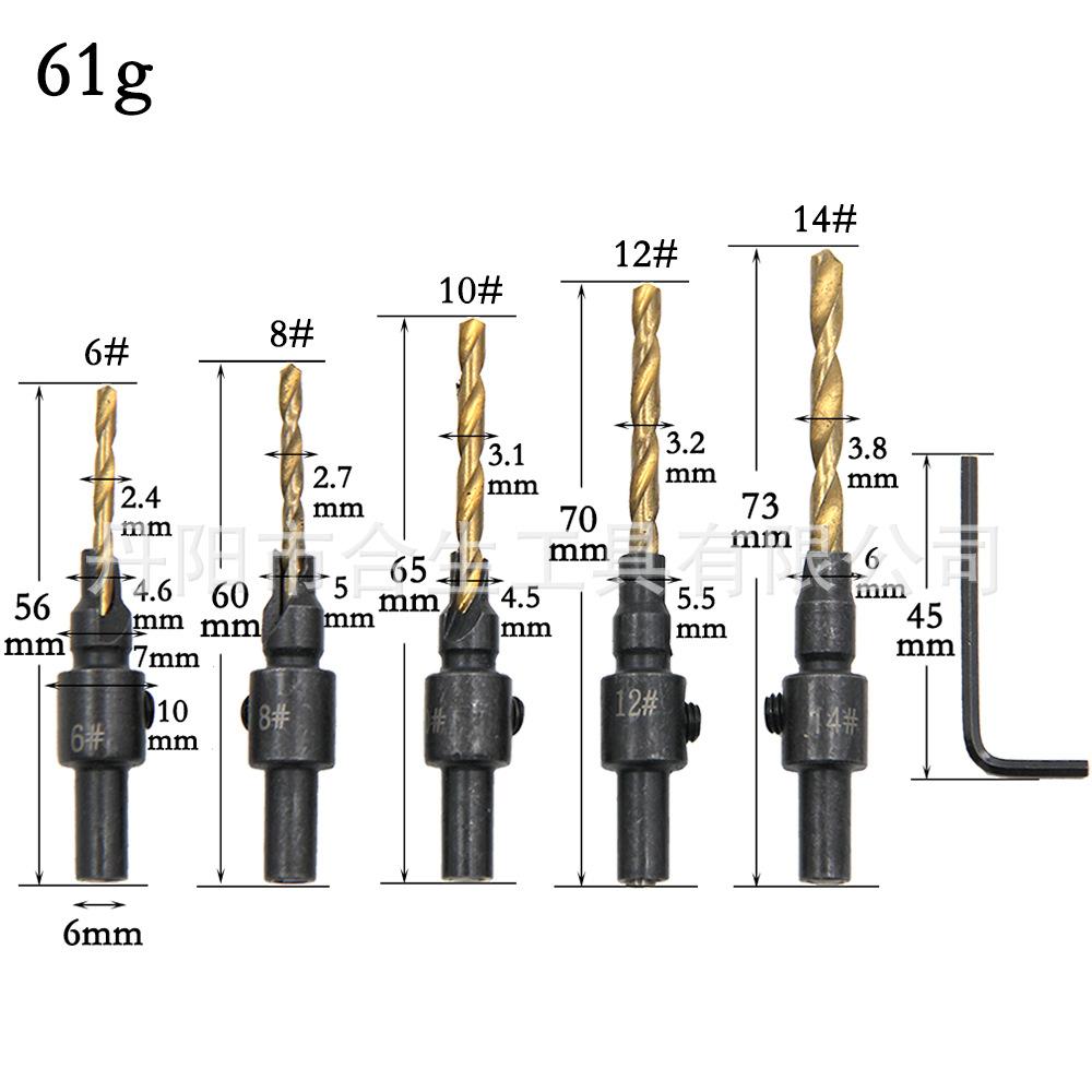 | Broca avellanadora redonda con mango de titanio de 5 piezas con llave (Nº 6-14) | 250 | 33*26*15 | 16 |