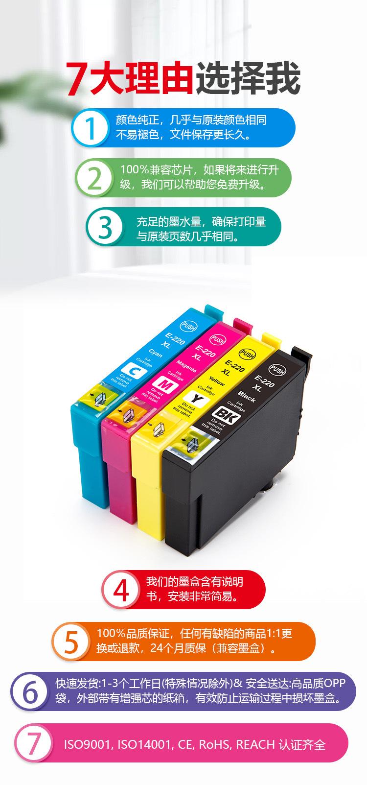 | E-220XLBK | T220XLBK | negro | teñir | 18.2ml | Contiene chip | Impresora Multifuncional WorkForce WF-2630/2650/2660/2750/2760 Impresora multifunción Expression Home XP-320/420/424 Small-in-One® |