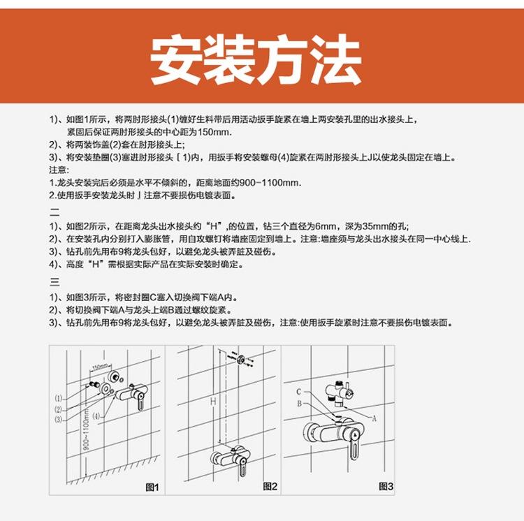 (1) Antes de instalar a torneira, a água suja, resíduos, areia e impurezas remanescentes na tubulação de água devem ser lavados antes de instalar a torneira para evitar entupimento.