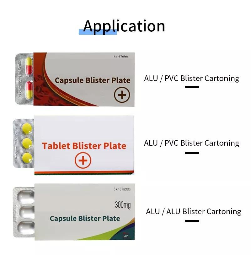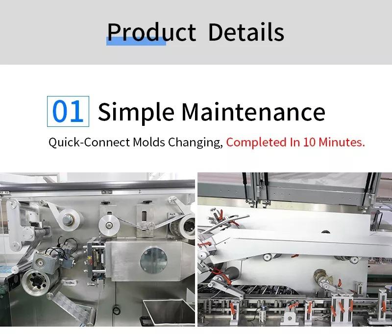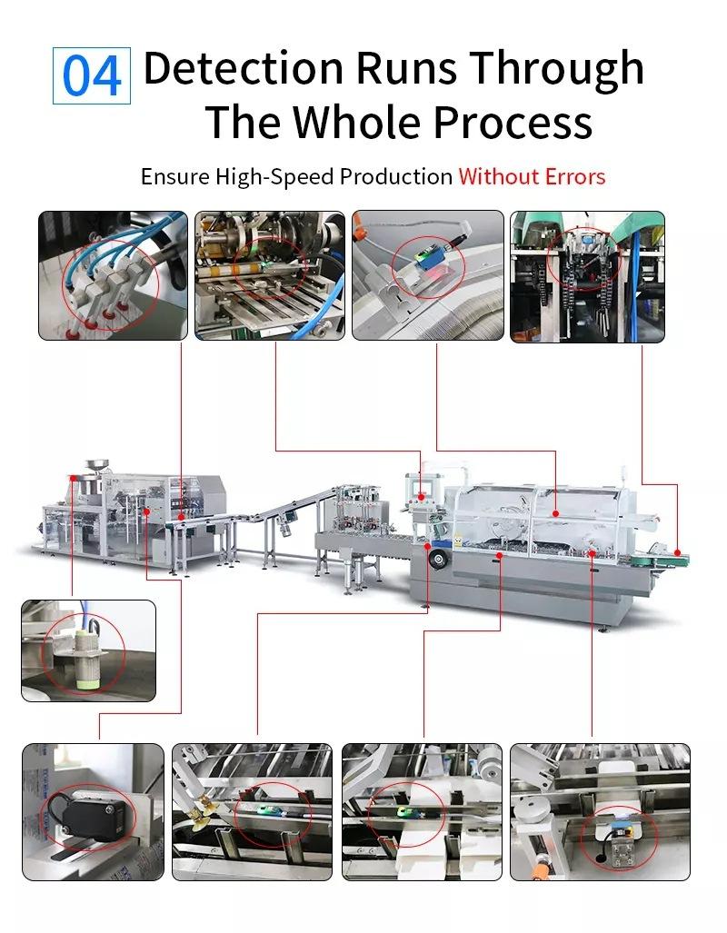 A máquina empacotadora para caixa pode embalar de forma automática e rápida placa de plástico de alumínio, cigarro eletrônico, limpador facial, pomada, saco macio, garrafa, pó, saco de grânulos, preservativo, alumínio macio de camada dupla, gesso, café, máscara e etc.