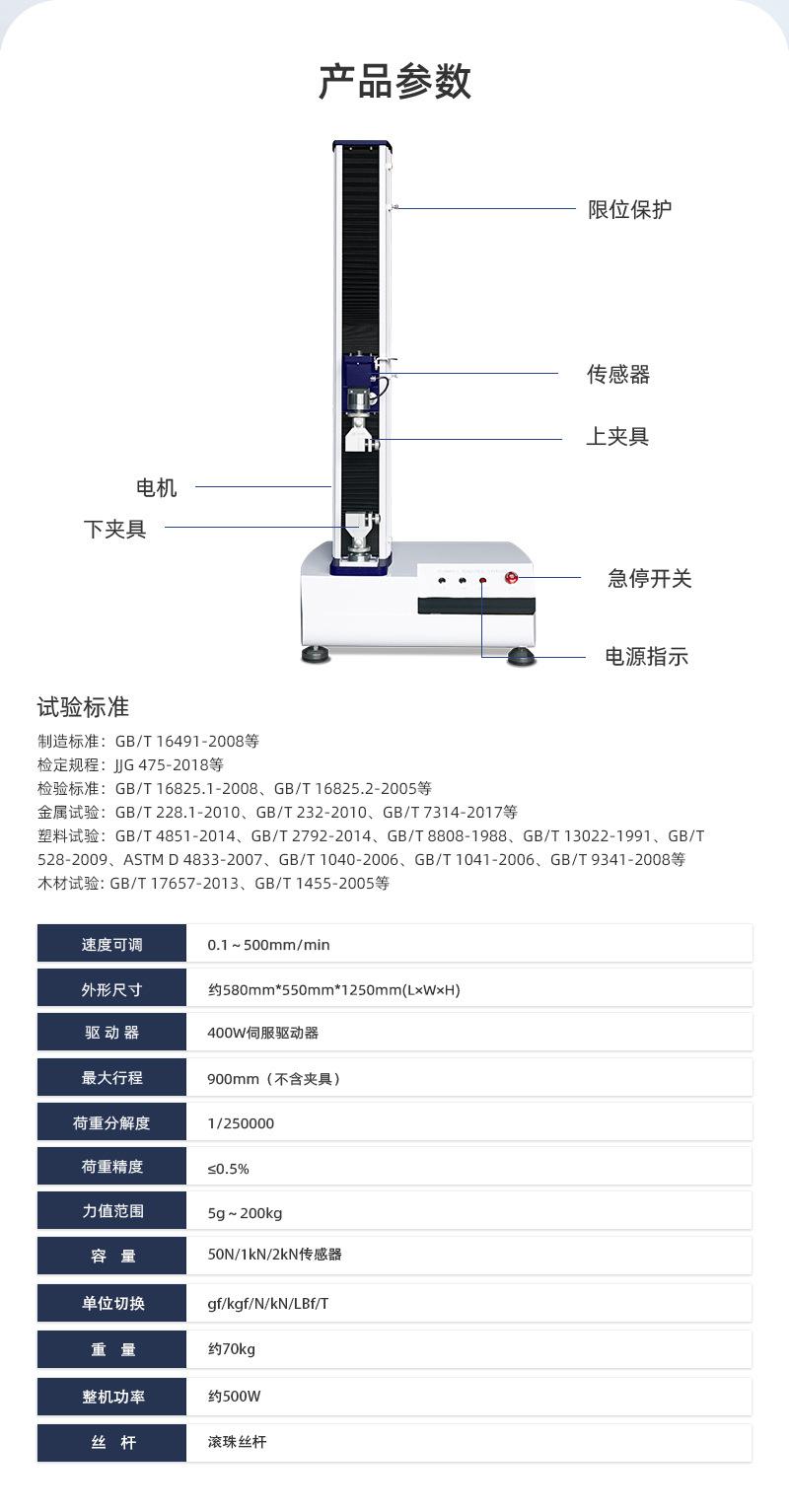 dois、Parâmetros técnicos principais da máquina de ensaio de tração
