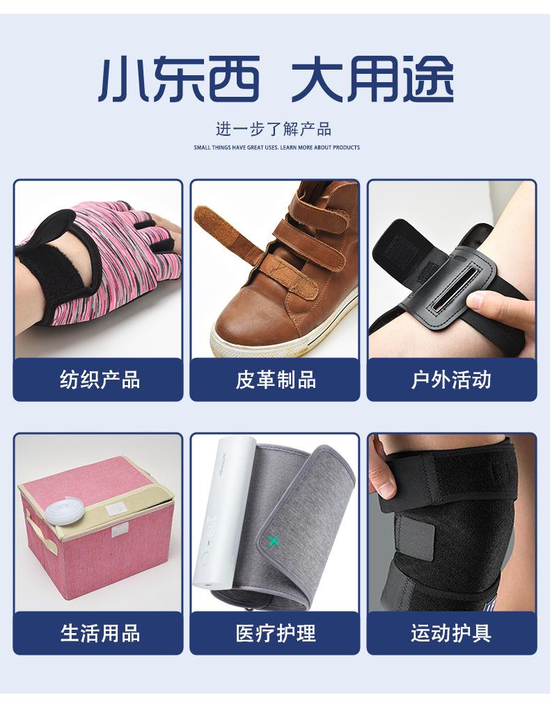Os produtos são amplamente utilizados como acessórios nas indústrias de vestuário, calçados, chapelaria, brinquedos, bagagem, barracas, médica, artigos esportivos e vários produtos militares. Os produtos passaram pelos padrões de certificação OEKO-TEX e ITS e obtiveram uma série de certificações.