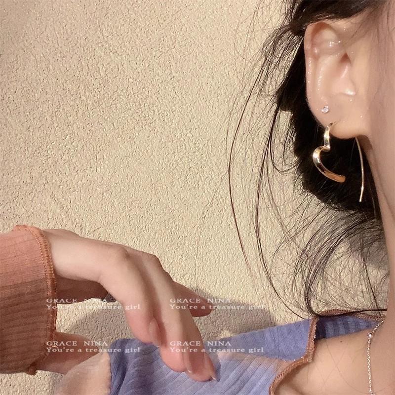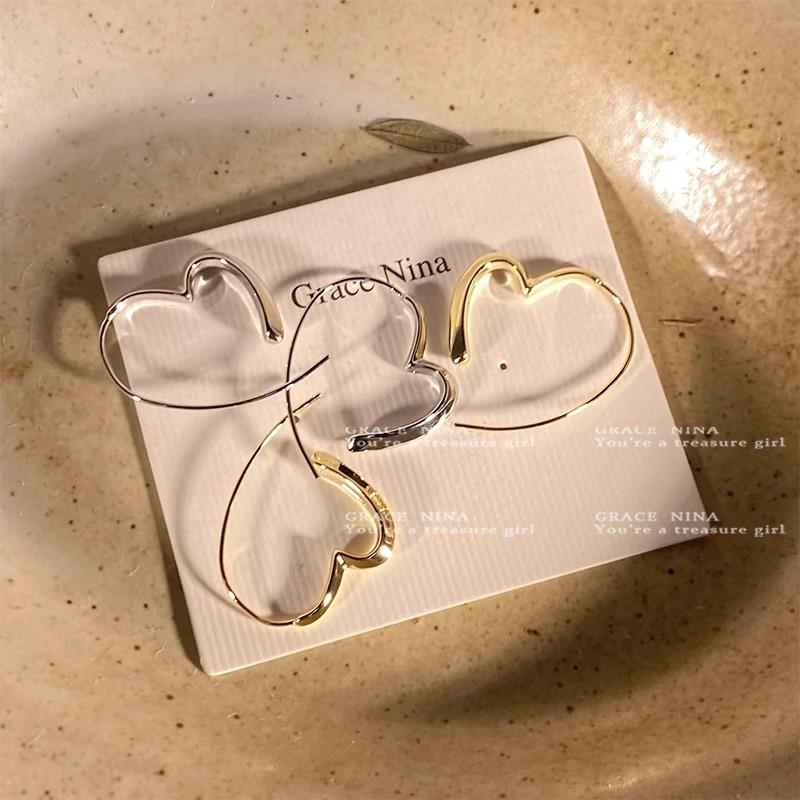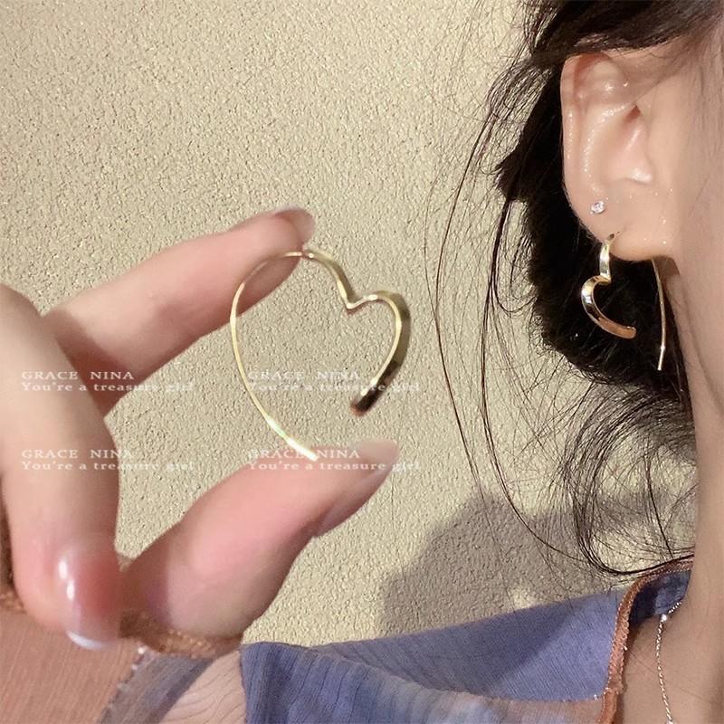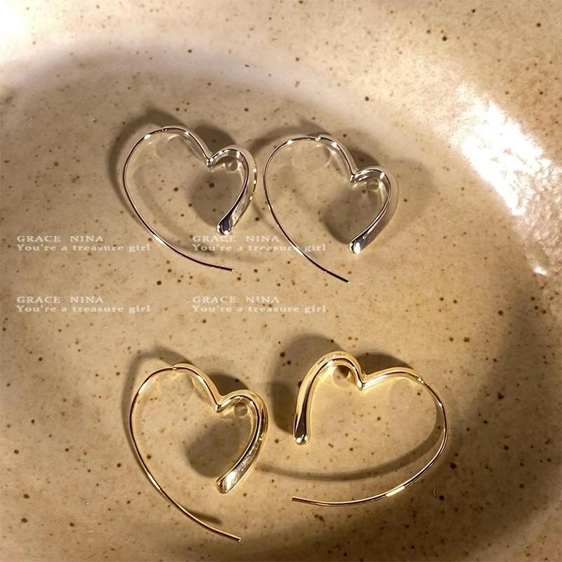 Brincos em formato de coração estilo frio para mulheres, brincos simples e versáteis, novo estilo quente 2024, deslocamento requintado, brincos sofisticados