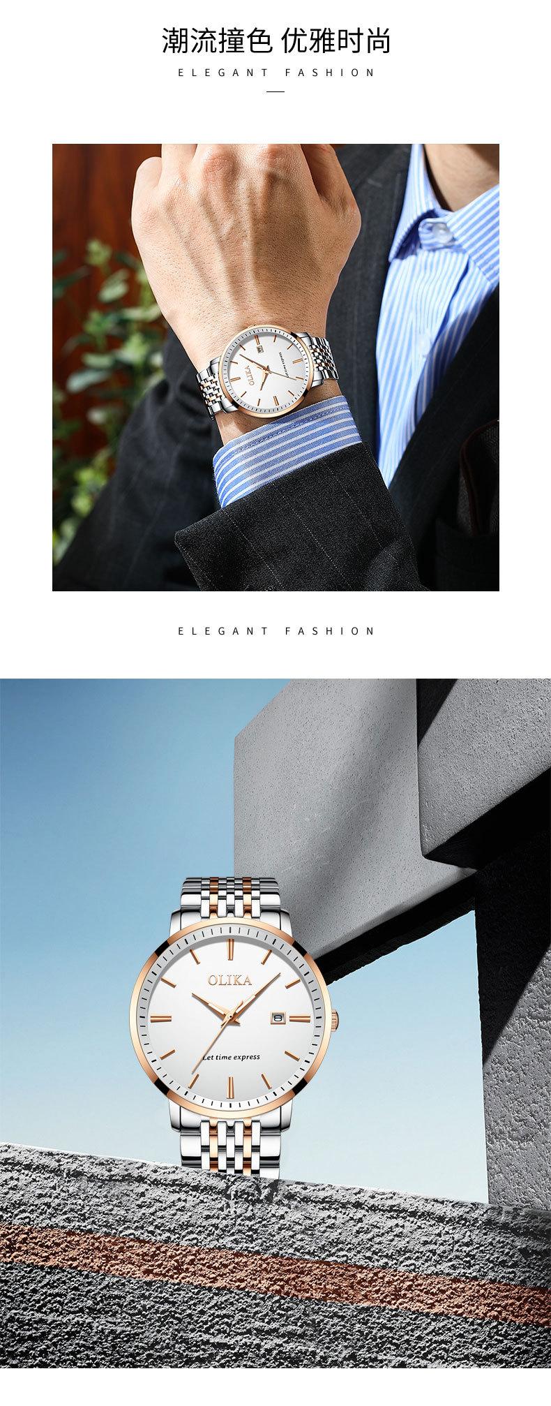 Reloj de moda Oliga para hombre, con correa de acero macizo de 9 cuentas, informal, deportivo, luminoso, resistente al agua, con pantalla curva, personalizable.¥75