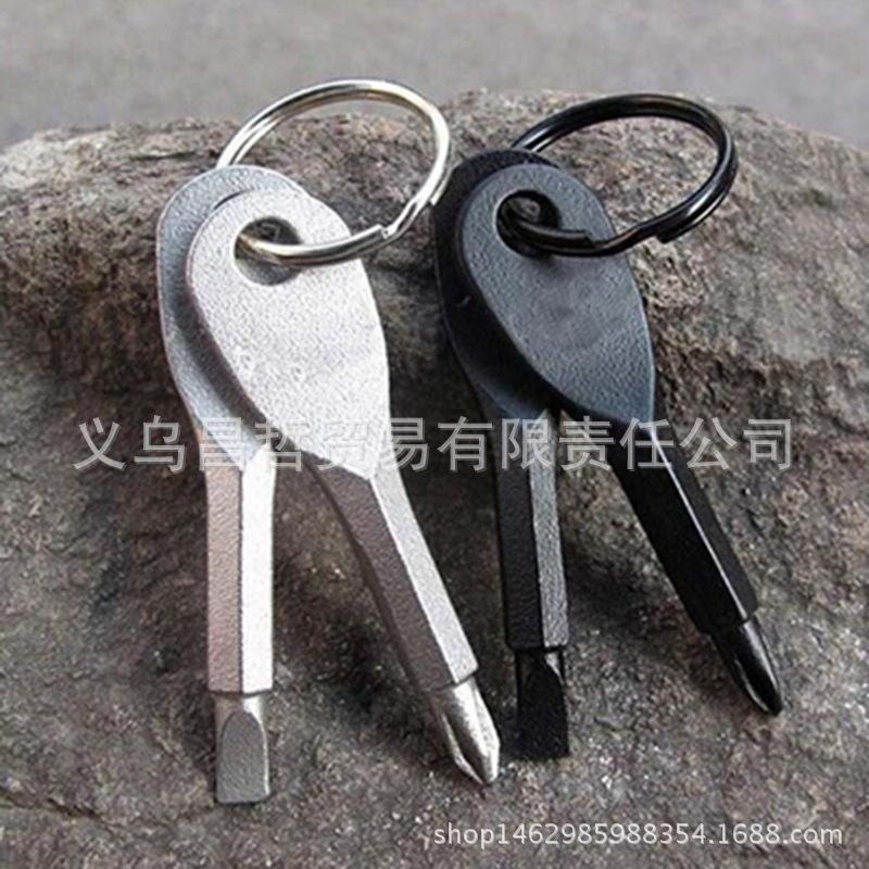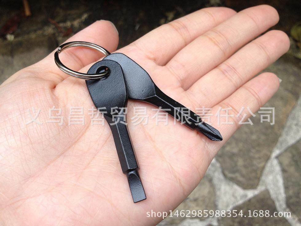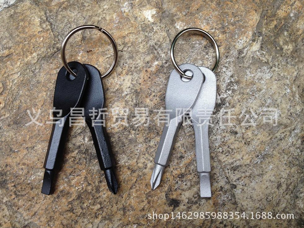 Nome do produto: Conjunto de combinação de chaves de fenda, ferramentas EDC de cruz plana, vem com dois chaveiros de aço inoxidável, preto e cinza