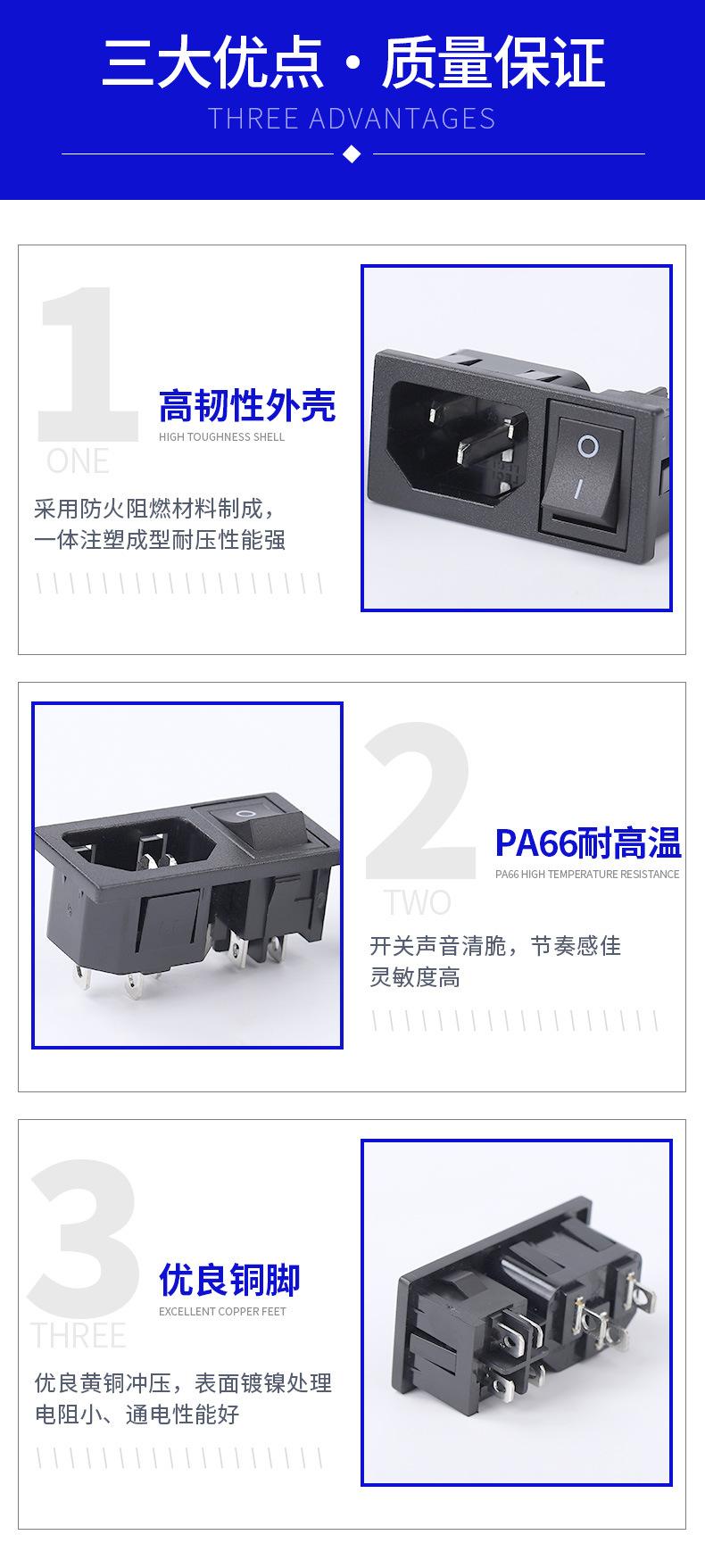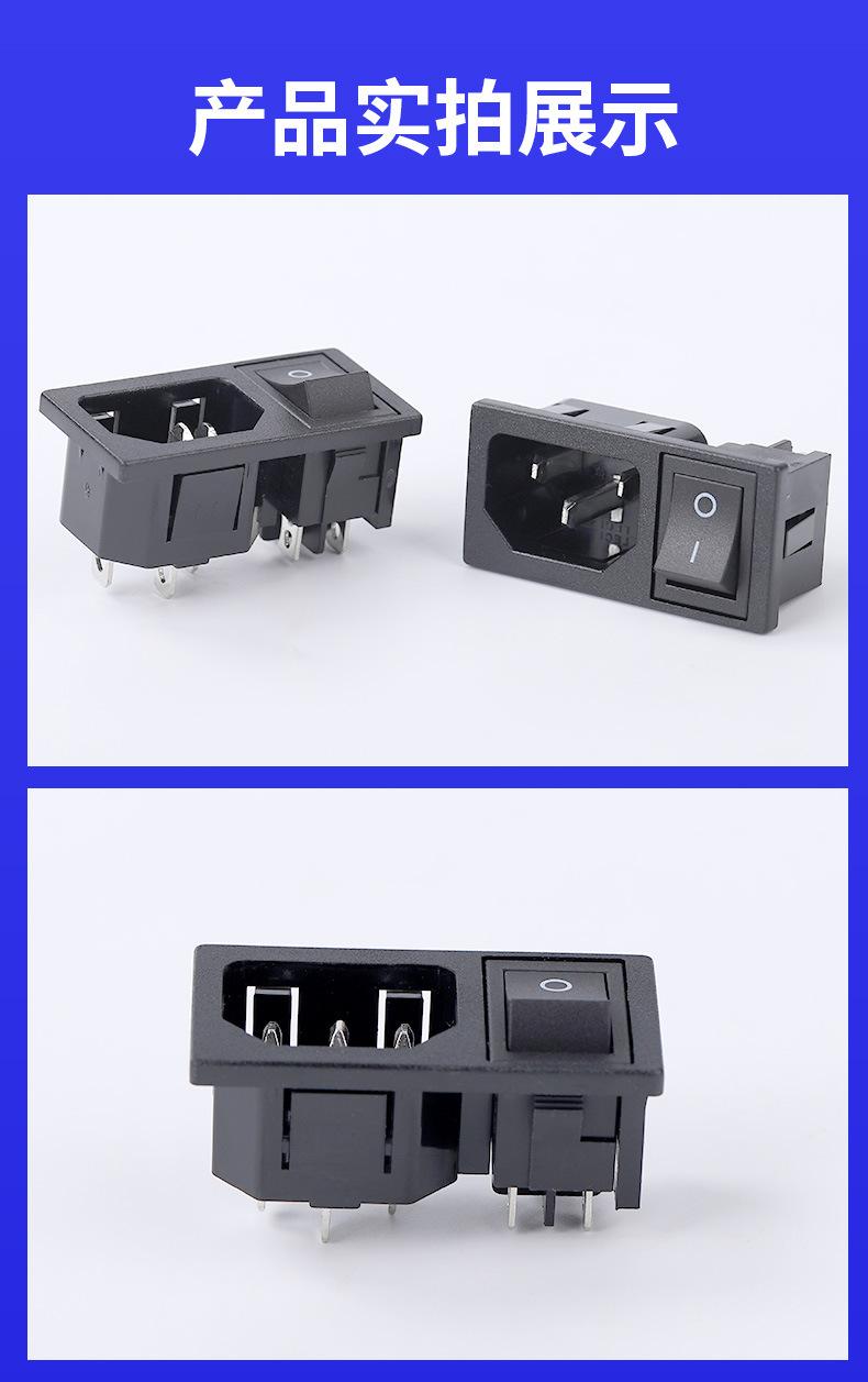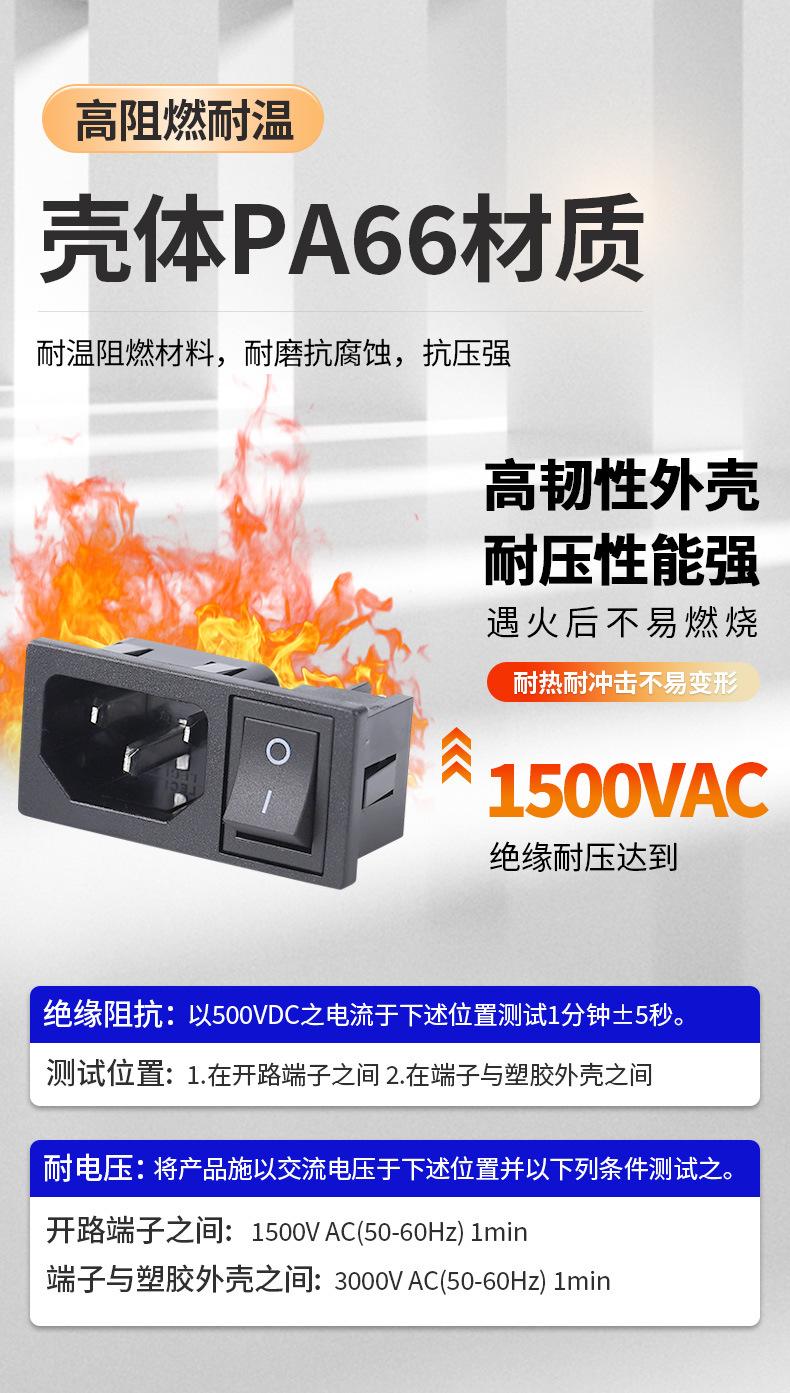 Toma de corriente CA tres en uno con interruptor y toma de fusibles para impresora 3D, toma médica militar