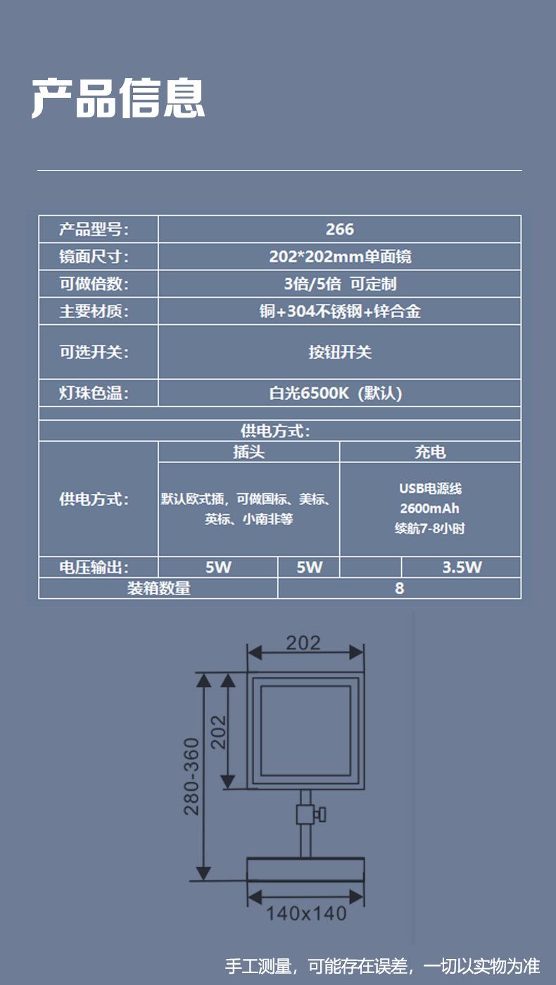 Os espelhos de maquiagem estão disponíveis em dois tamanhos: 6 polegadas e 8 polegadas, sendo 8 polegadas o tamanho mais usado no mercado. Além disso, os espelhos de beleza podem ser divididos em ampliações de 3x, 5x e 7x, sendo 3x a ampliação mais utilizada no mercado.