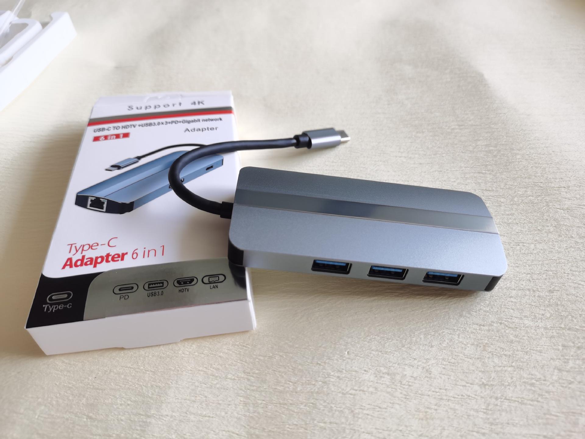 6 en 1 2209 LAN Gigabit + USB 3.0*3 + 4K/30Hz + PD:100W