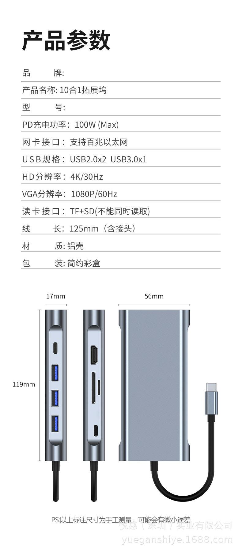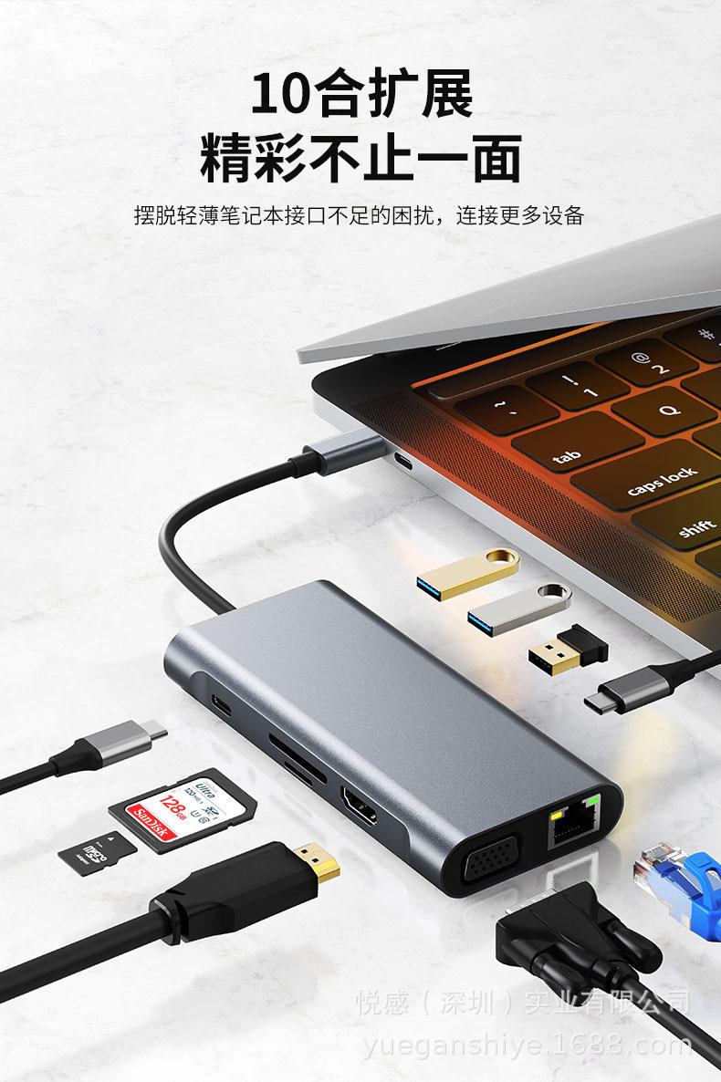 11 en 1 2110 VGA+4k/30hz+pd100w+tarjeta de red(100M)+usb3.0+2.0*3+sd+tf+Audio