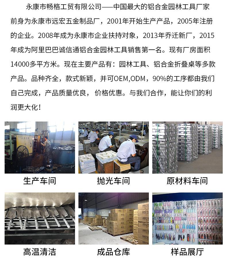 Yongkang Changge Industry & Trade Co., Ltd., anteriormente conhecida como Yongkang Yuanhong Hardware Products Factory, foi registrada em 2005 com a aprovação dos departamentos nacionais relevantes. Começou como uma oficina familiar e tornou-se um alvo de apoio às pequenas e médias empresas na cidade de Yongkang em 2008, após muito trabalho. A fábrica ocupa agora uma área de mais de 5.000 metros quadrados. Produz principalmente ferramentas de plantio de jardim, mesas dobráveis de liga de alumínio, fogões para churrasco e outros produtos, bem como esfregões Haoshen e acessórios de fundição de alumínio. Contamos com designers e técnicos próprios, que podem fazer amostras de acordo com as necessidades do cliente em tempo hábil, e o preço pode obter o melhor desconto! Obtenha mais lucros!