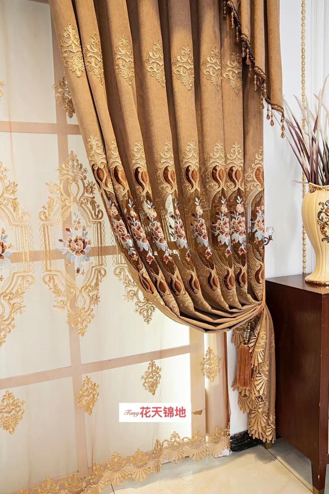 【Modelo】 Bordado em chenille - Céu de flores e fundo de brocado