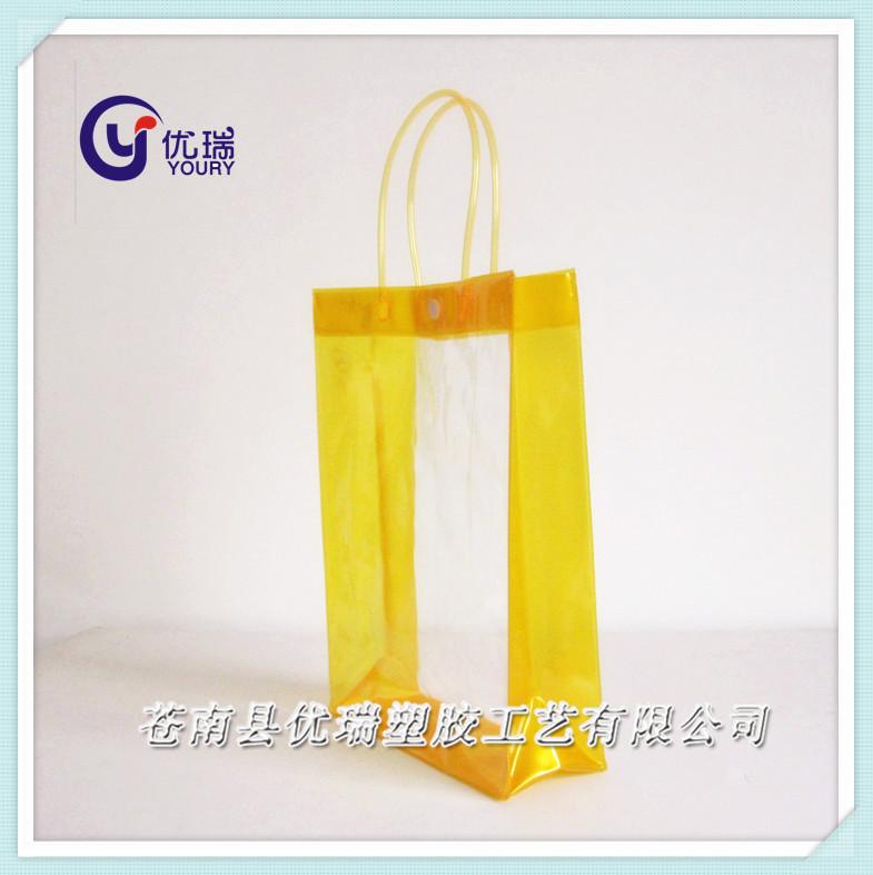 Bolso de mano transparente con botón a presión de PVC, bolsa de embalaje para bebidas de PVC, bolsa de plástico de PVC para compras, cosméticos, regalos
