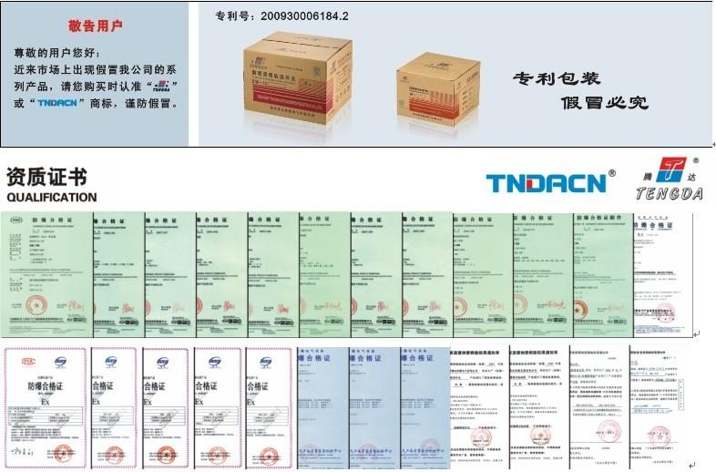 ZhejiangTengdaA prova de explosãoeletricidadeGás Co., Ltd.principalnascerProduzircadatipoA prova de explosãoeletricidadeDispositivoequipamento, mais à prova de explosãoeletricidadeDispositivoEquipamentoBem-vindovocêVireletricidadeConselhoInvestigar