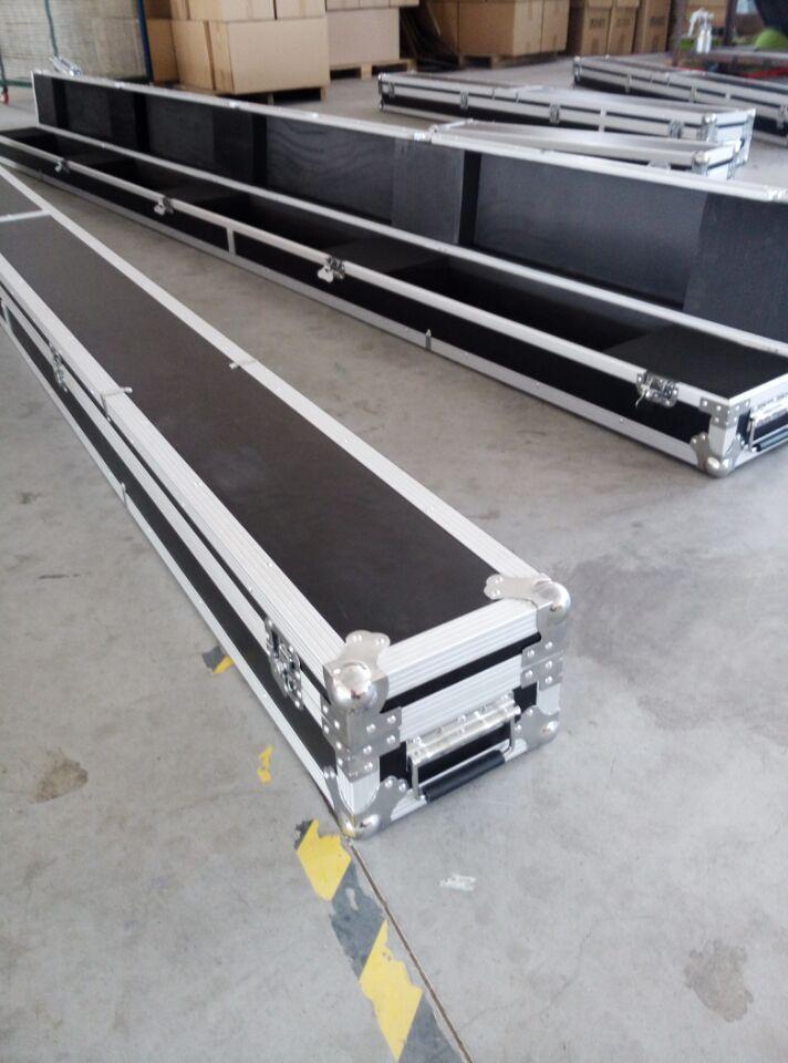 Material: Marco de aleación de aluminio; tablero ignífugo de superficie y madera contrachapada pegados entre sí; esquinas de hierro esférico; remaches; ruedas; cerraduras de mariposa; nuevas manijas de anillo de caja; almohadillas a prueba de golpes de EVA, etc.