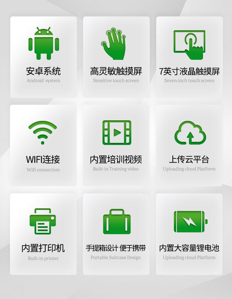 16. A tela sensível ao toque em cores reais de 7 polegadas altamente sensível adota operação mais eficiente e fácil de usar, exibição interativa e de alta definição, o que reduz significativamente as operações complicadas e erros de instrumentos tradicionais, e obteve vários "direitos autorais de software".