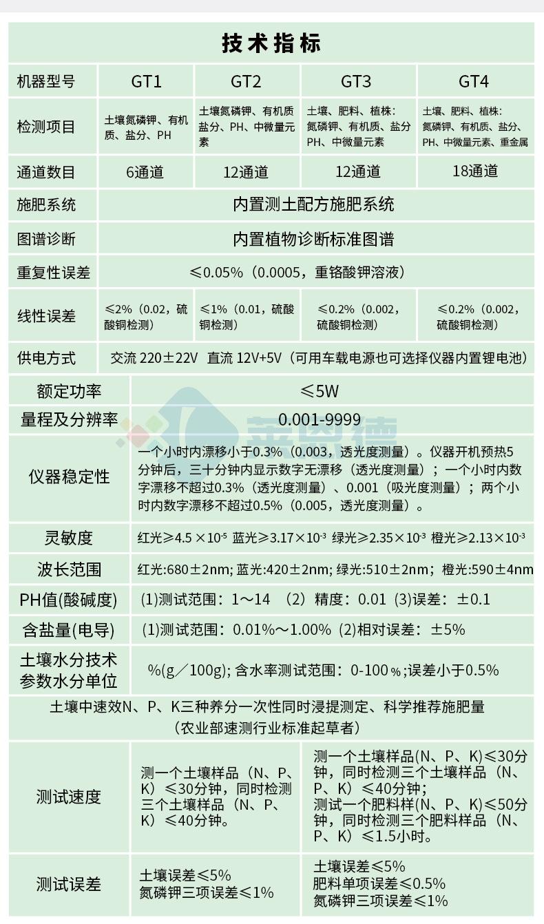 O erro do nitrogênio, fósforo e potássio do solo é ≤1%, o erro da matéria orgânica é ≤2% e o erro relativo dos oligoelementos é ≤5%; o erro do item de fertilizante único é ≤0,5%, e o erro do nitrogênio, fósforo e potássio é ≤1%.
