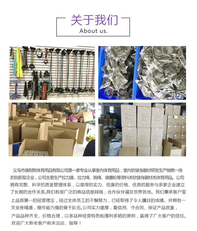 Yiwu Cones Sports Goods Factory - fabricante especializado na produção de artigos esportivos indoor. A empresa foi fundada em fevereiro de 2011. Os produtos incluem principalmente tensores de mola, cordas elásticas, folhas de tensão, reforços de braço, reforços de preensão, bambolês, rodas de ginástica abdominais, suportes de flexão, placas de torção de cintura, halteres de porta e outros suprimentos esportivos internos .