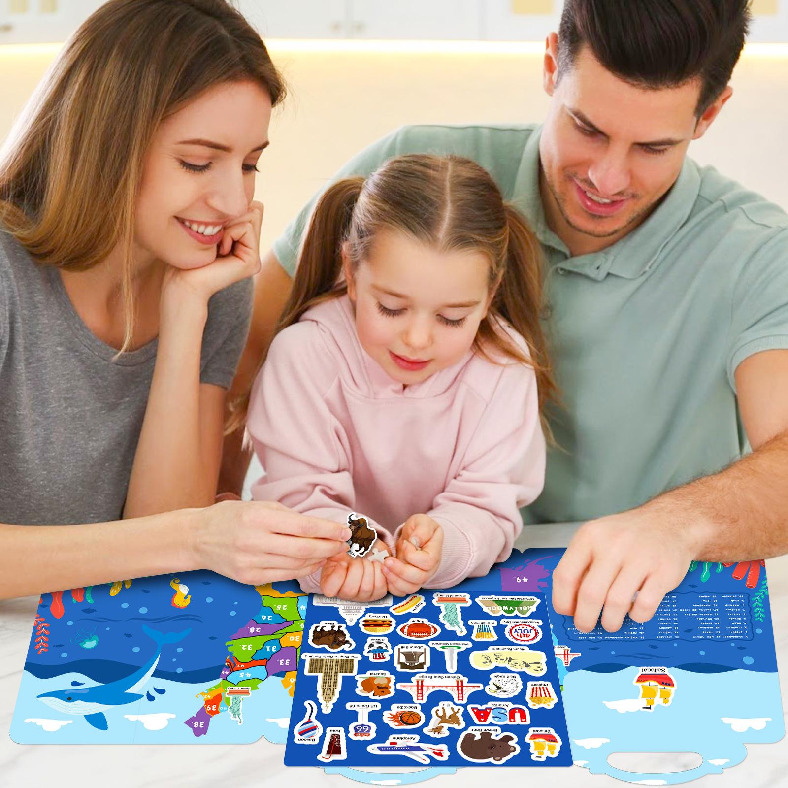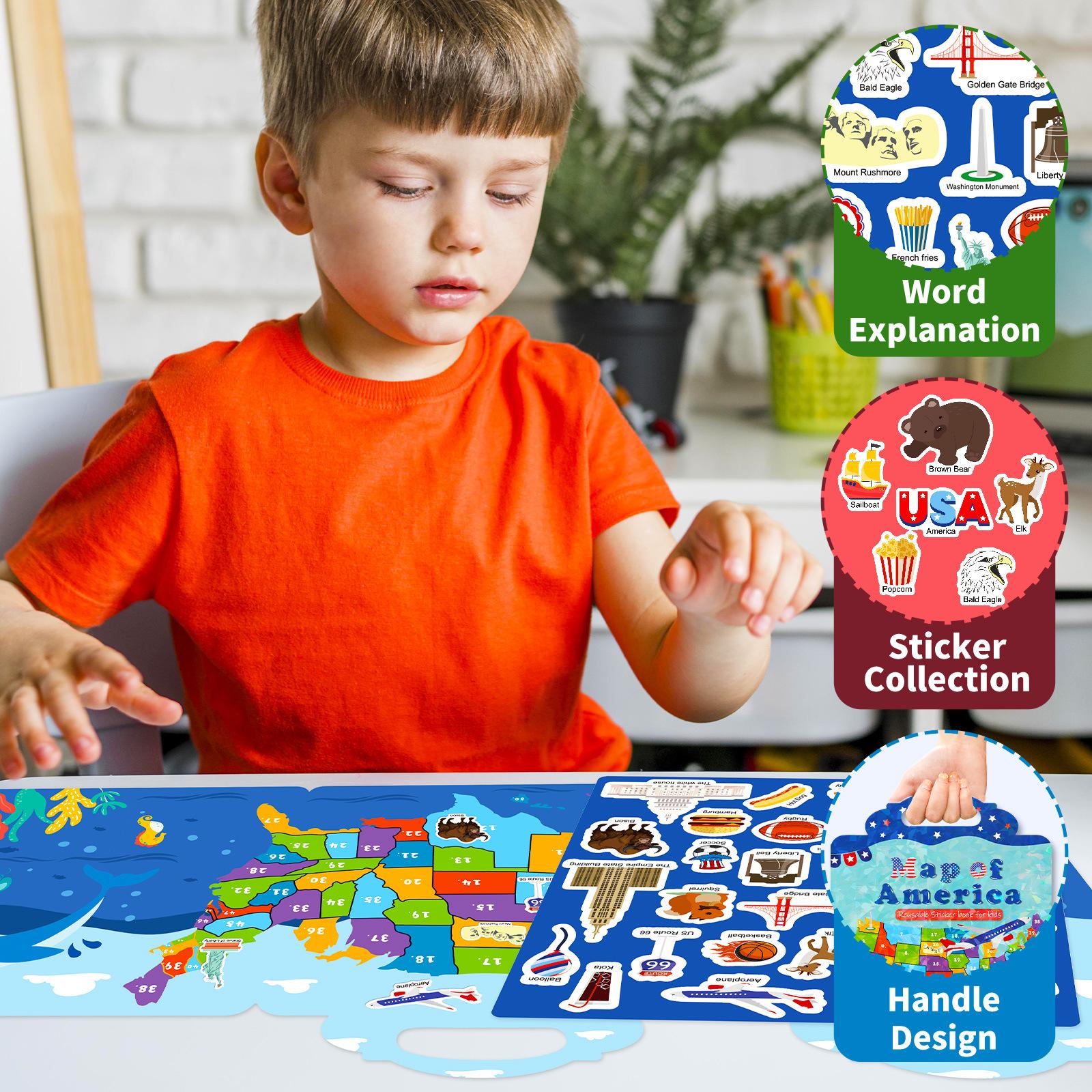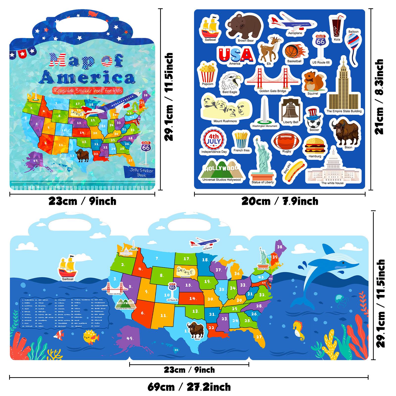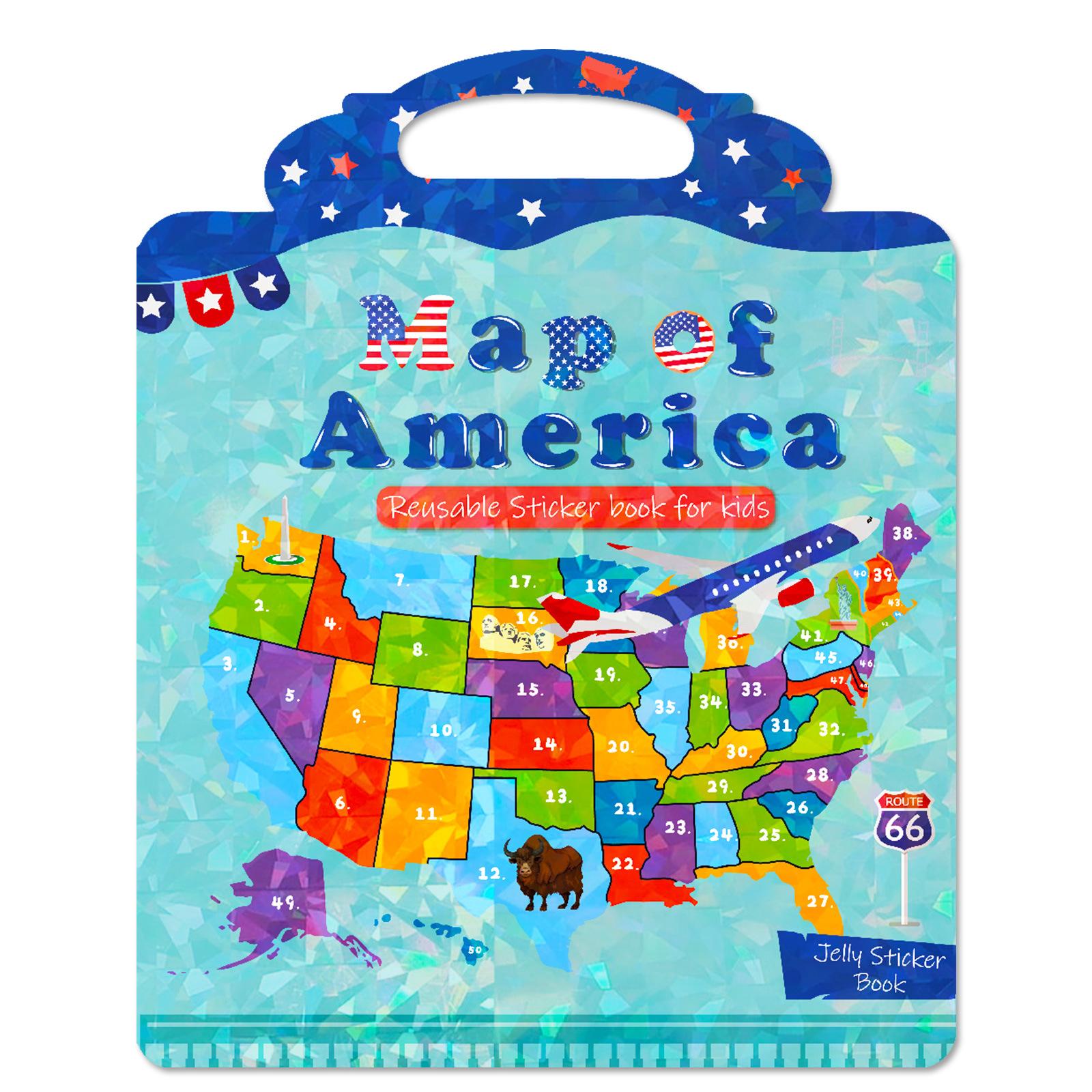 Libro de pegatinas de gelatina portátil con diseño de mapa cognitivo americano para niños, de venta transfronteriza, para entrenamiento de atención y educación temprana, con pegatinas repetidas