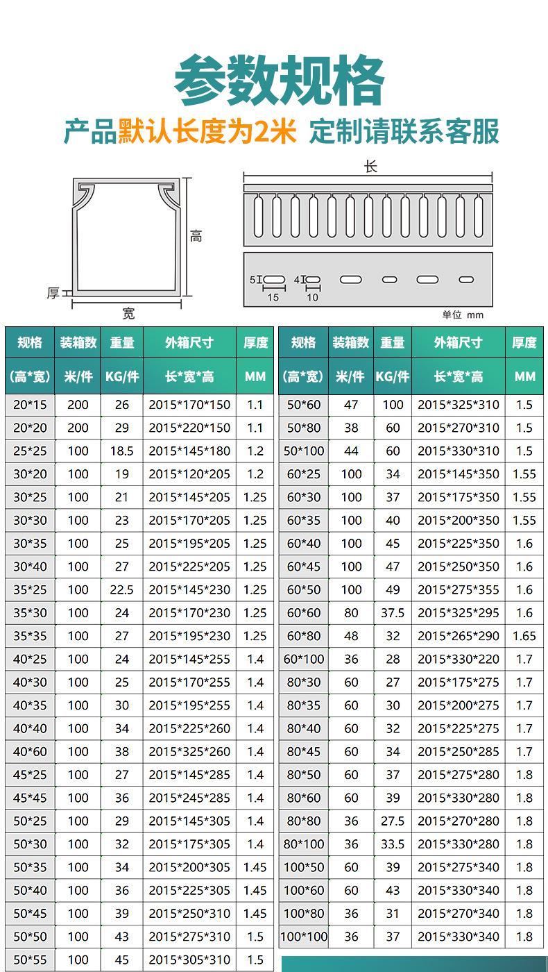 Feitos de material de PVC, os dentes da calha de arame têm boa resistência à flexão, e a superfície da junta é lisa e a calha de fiação não é fácil de quebrar a 90 graus. A temperatura de trabalho pode ser de -25 graus a 75 graus, permitindo que você use com confiança. Depois de usar este produto, a fiação é conveniente, a fiação fica limpa, bonita e a instalação é confiável, facilitando a localização, reparo e substituição de linhas.A cor normal é cinza, todos têm 2 metros de comprimento. O preço no link não inclui impostos e frete. O normal são dentes grossos! Você pode personalizar dentes finos/selados/selados. Se precisar de personalização ou impostos incluídos, entre em contato com o atendimento ao cliente!