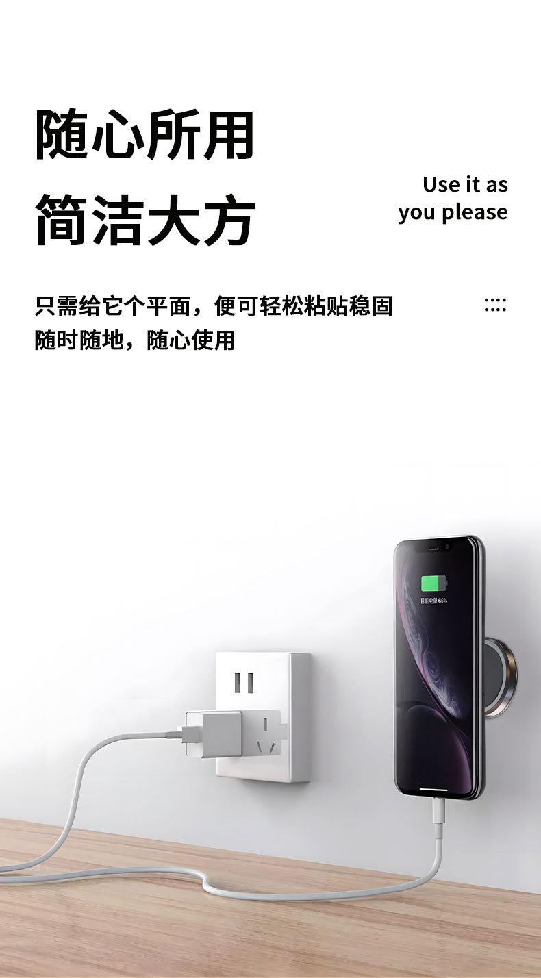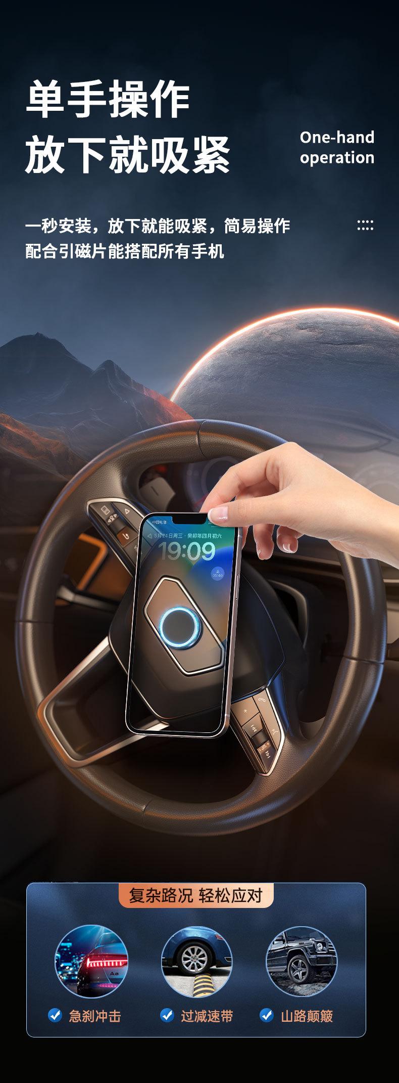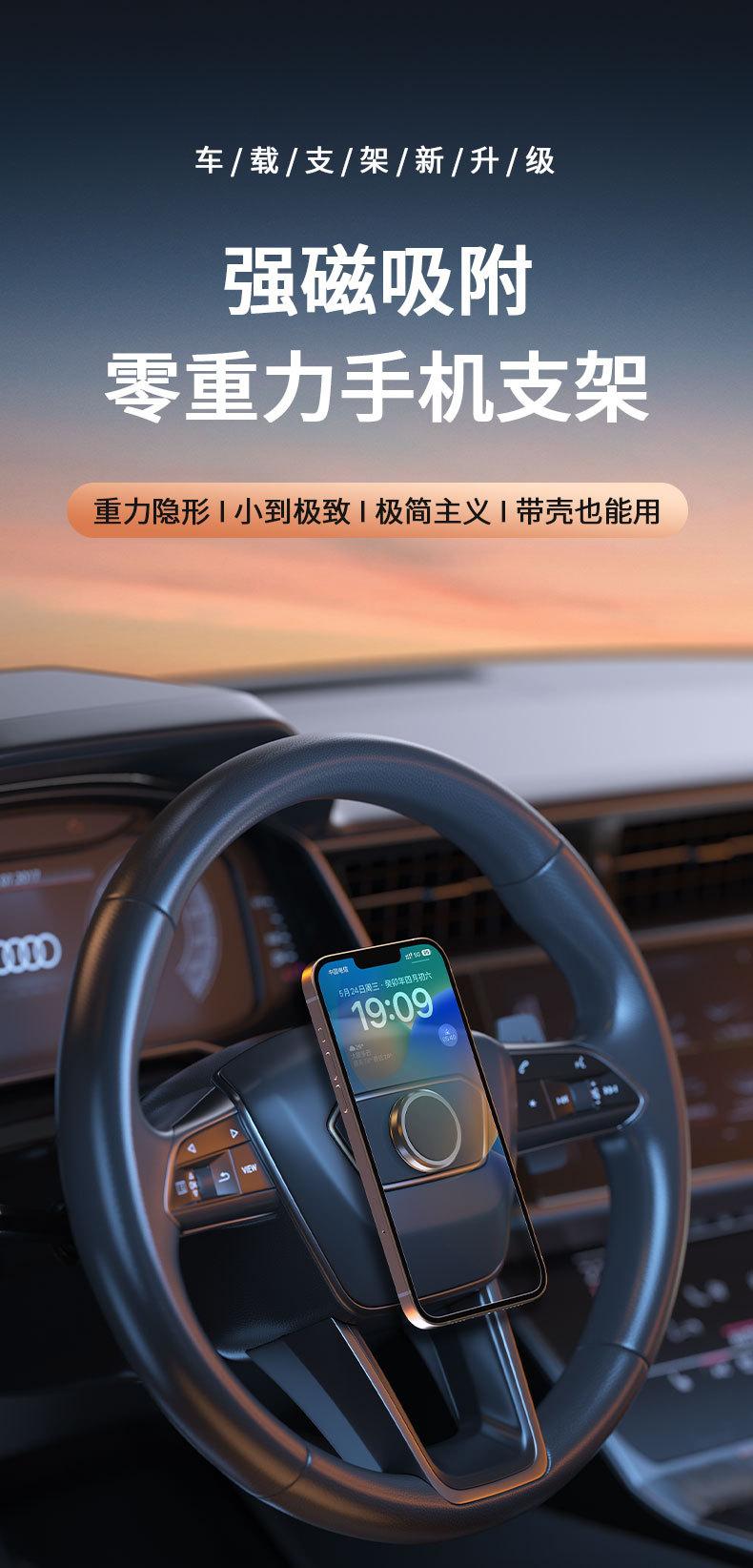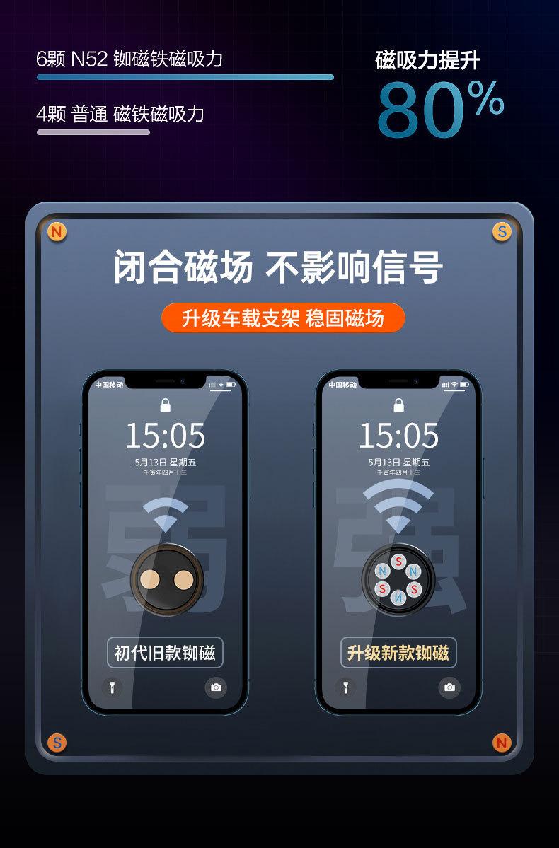 Configuração: Suporte de carro de gravidade zero, 6 ímãs fortes N52 embutidos. Observação: Padrão com 2 chapas de ferro redondas de 40MM, 1 adesivo reserva.