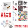[Conjunto de cartões preto e branco de quatro peças em caixa colorida]
