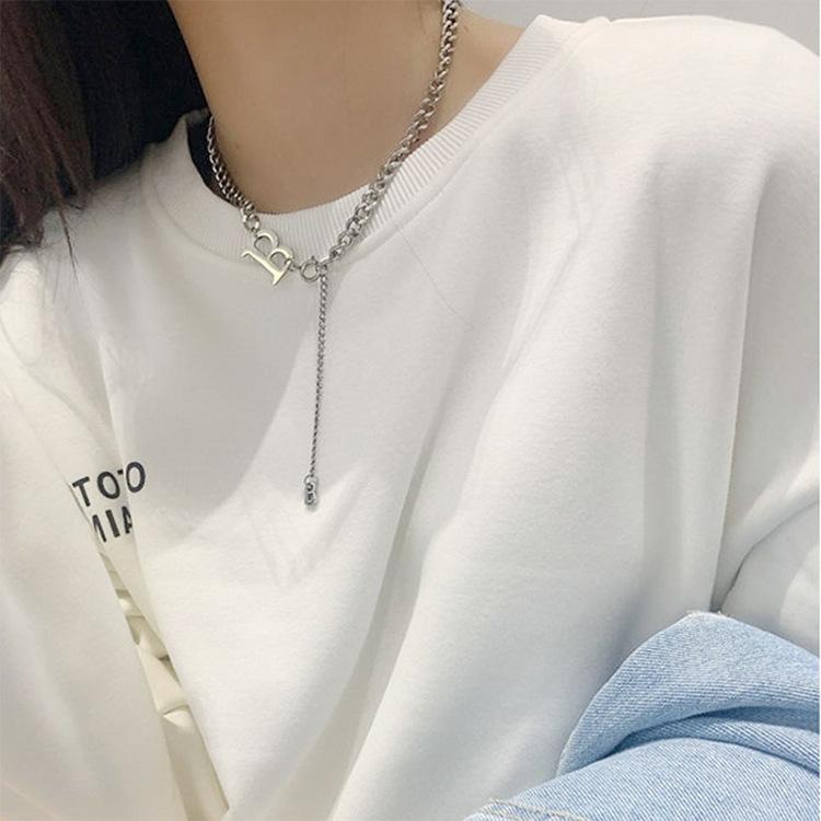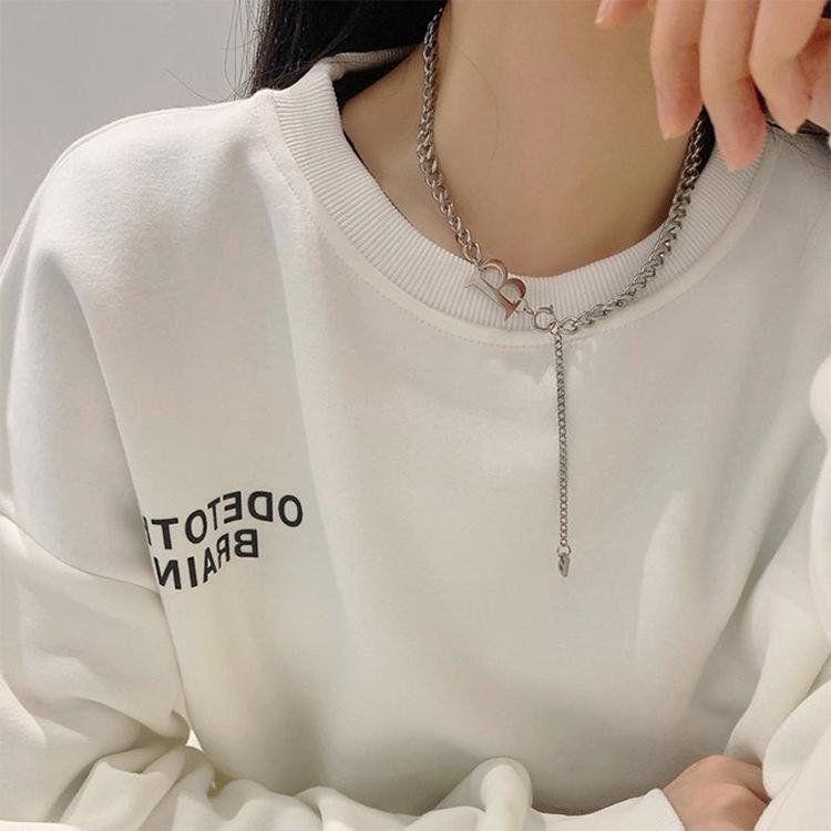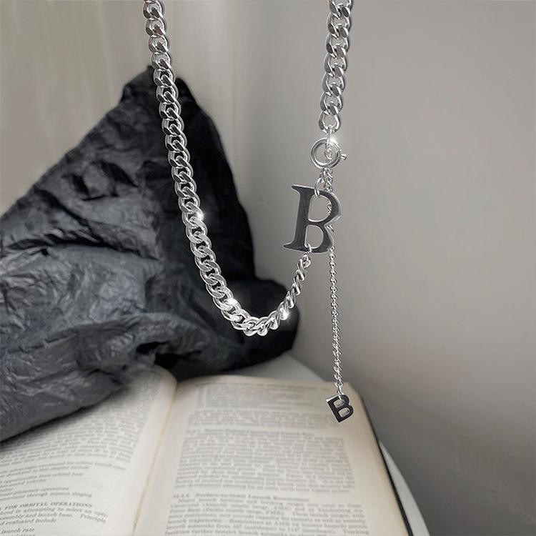 Personalizado ins estilo frio simples borla b letra titânio aço doce legal colar clavícula corrente punk tendência colar