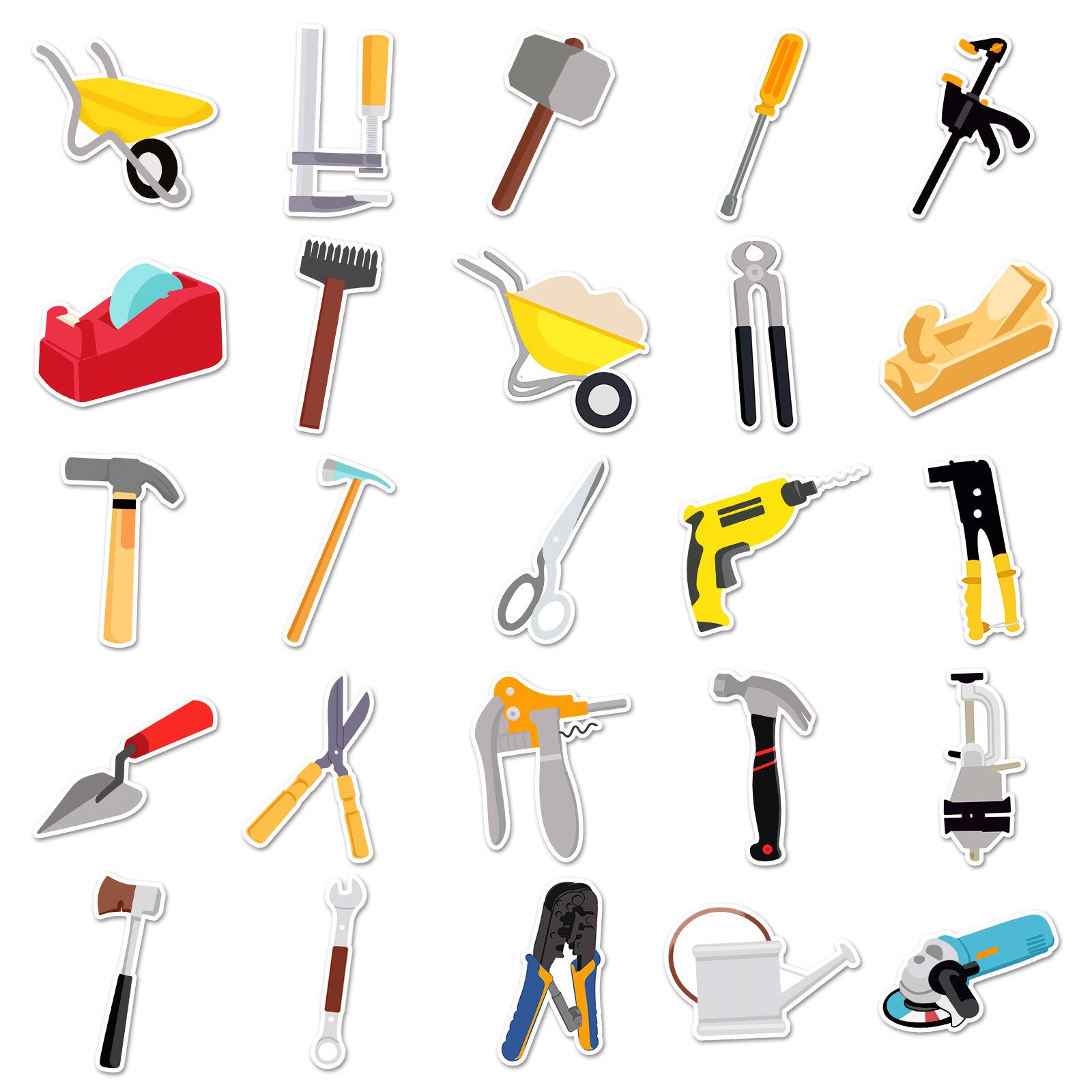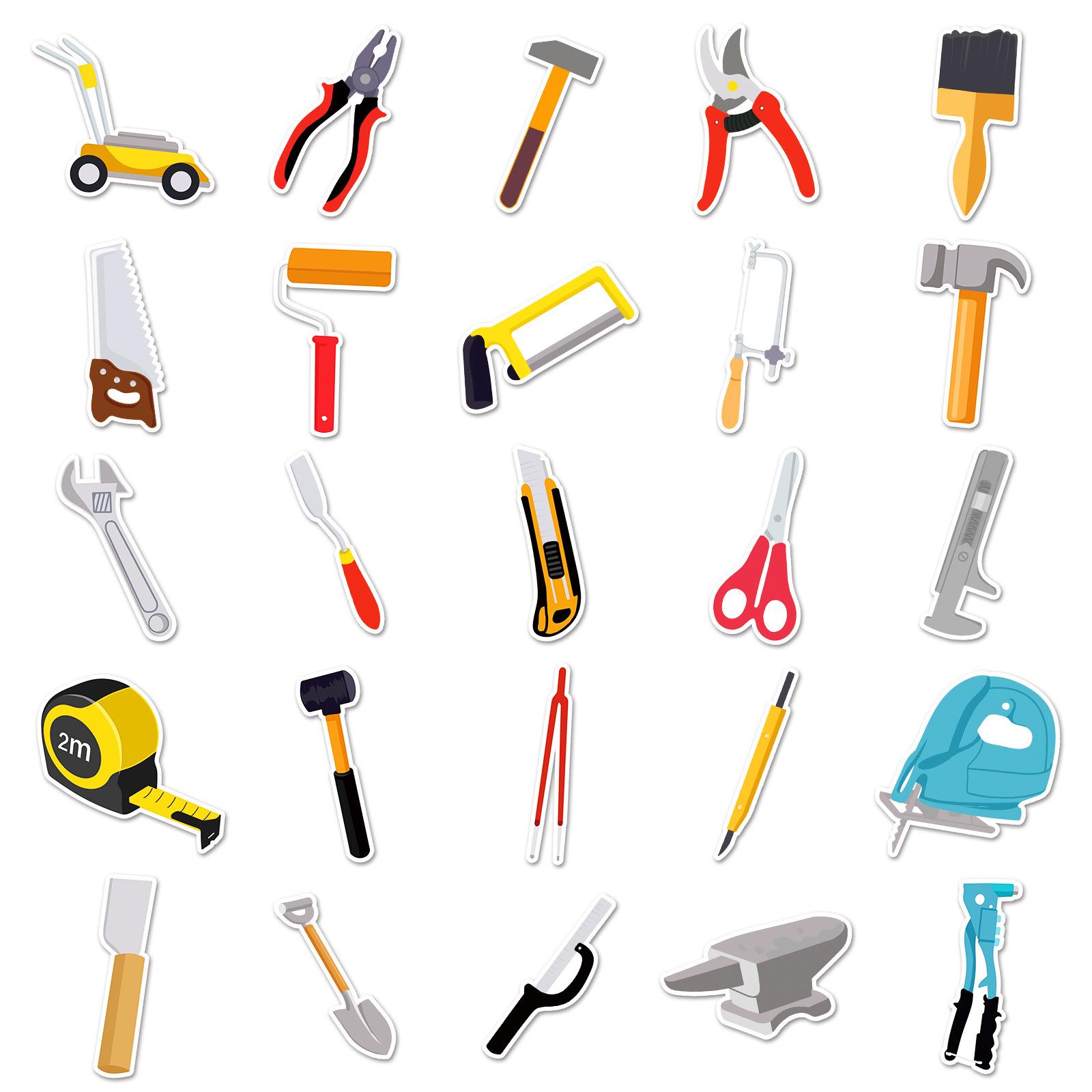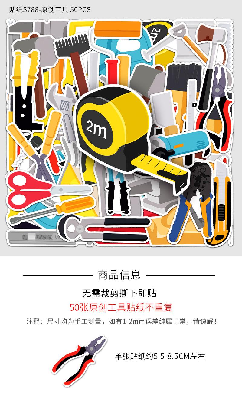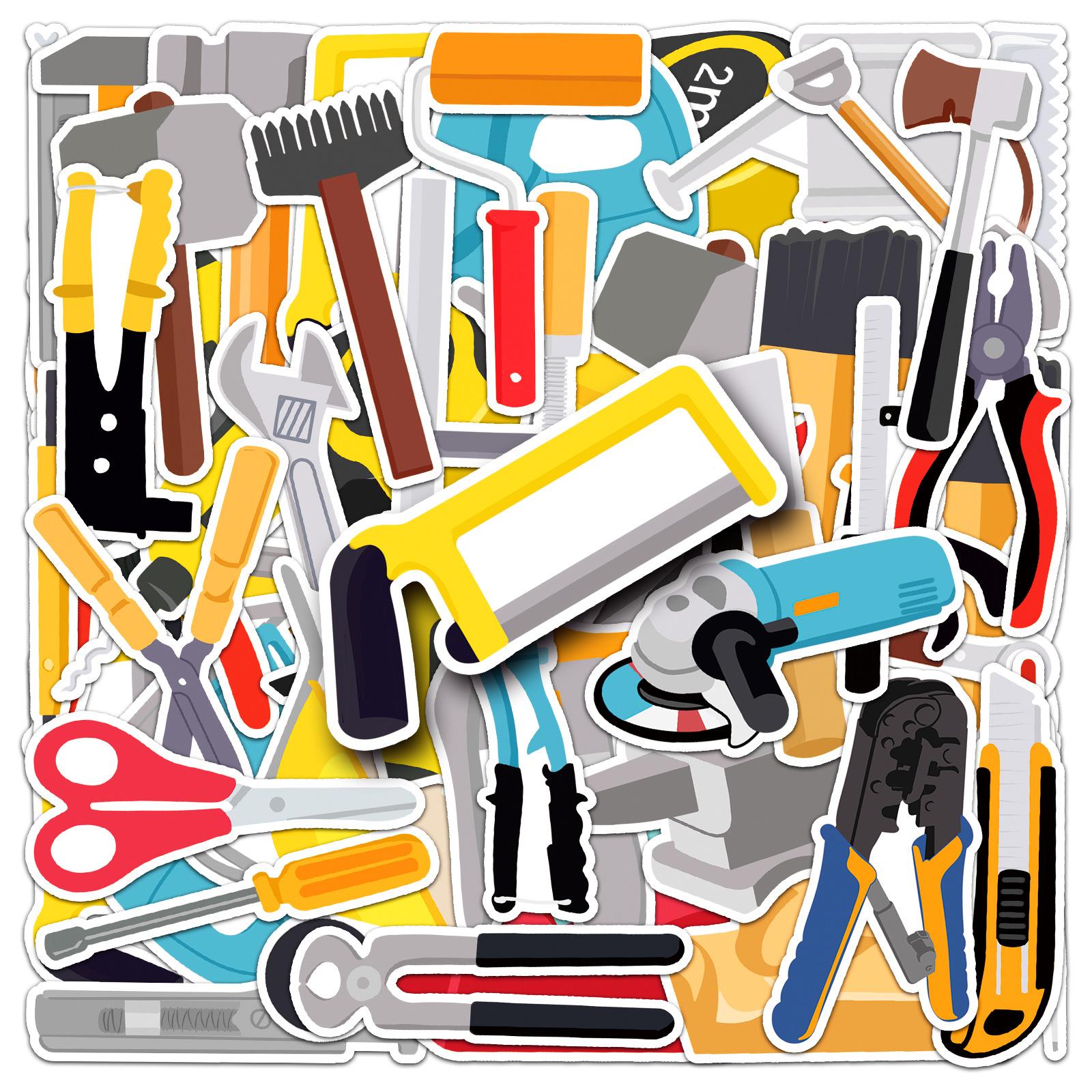 50 ferramentas originais adesivos pintados à mão ferramentas de instalação de desenhos animados caderno de grafite fofo livro-razão decoração à prova d'água