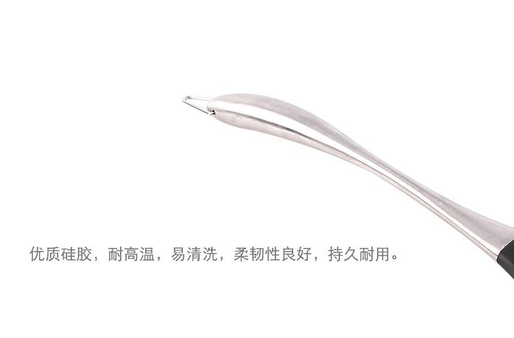 Material: o cabo da espátula é de aço inoxidável 430 e a extremidade frontal da espátula é de silicone resistente ao calor