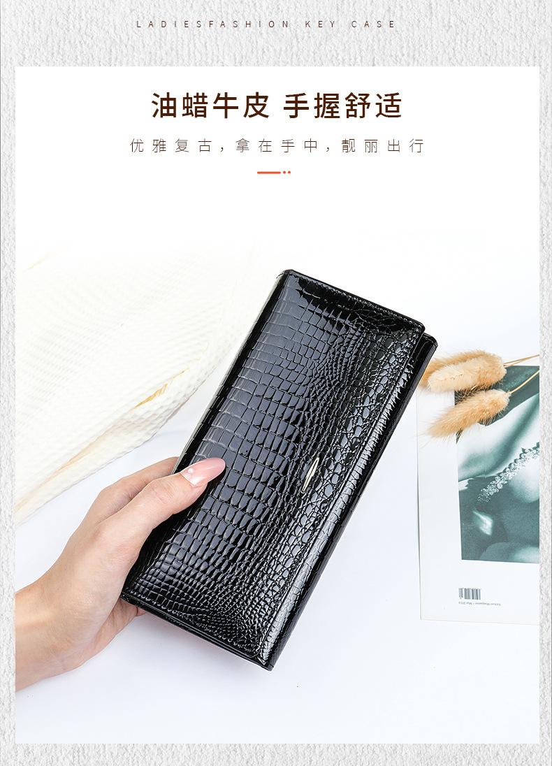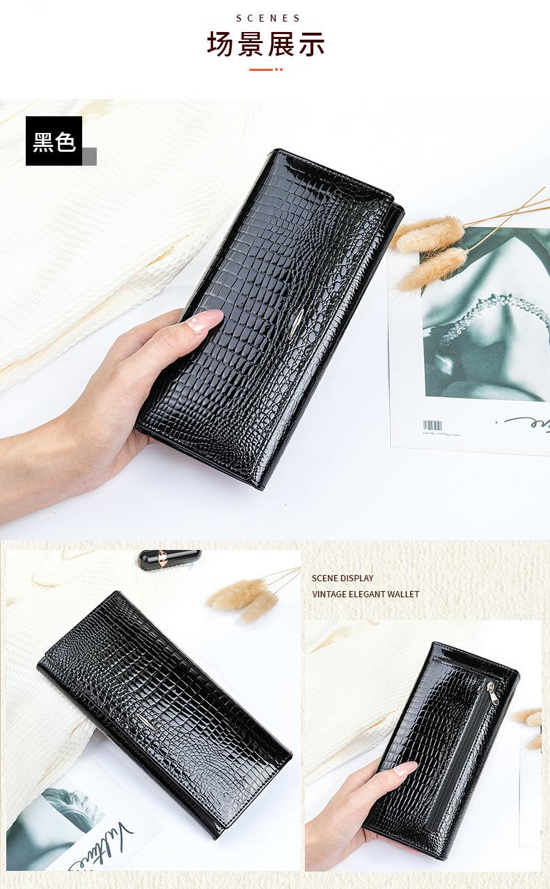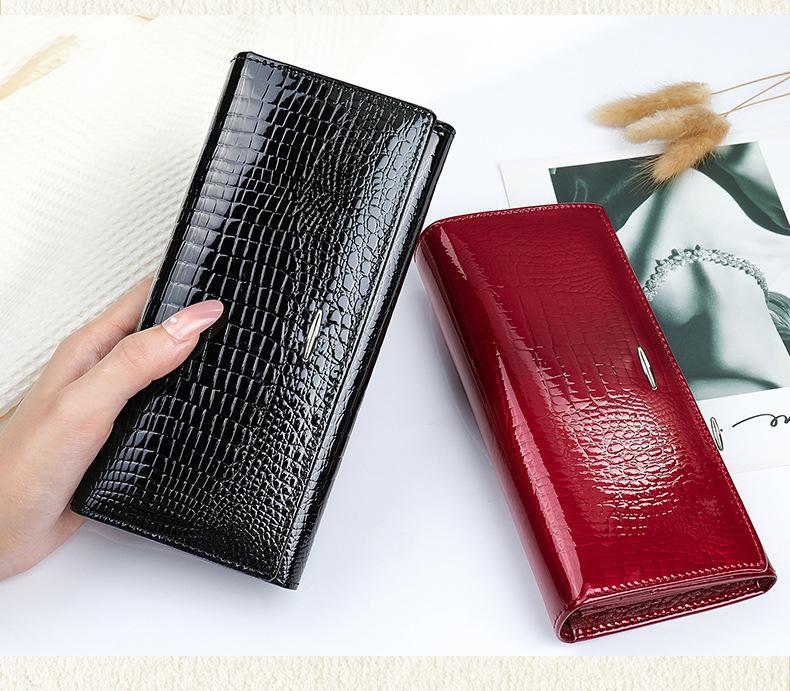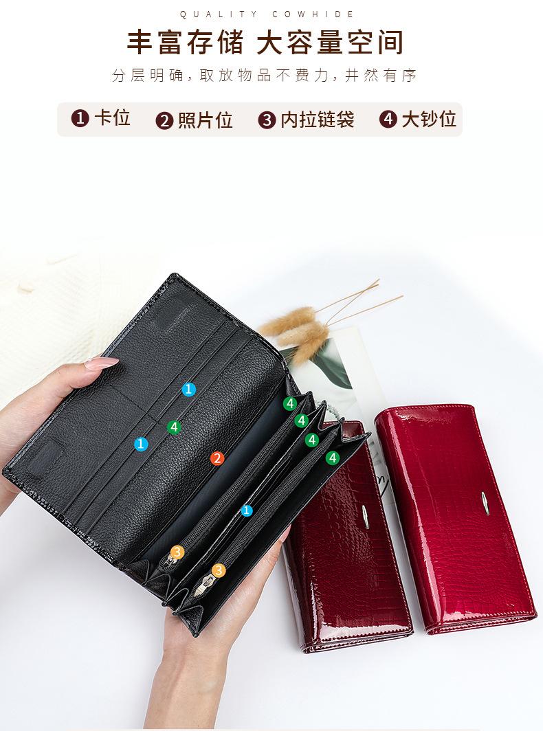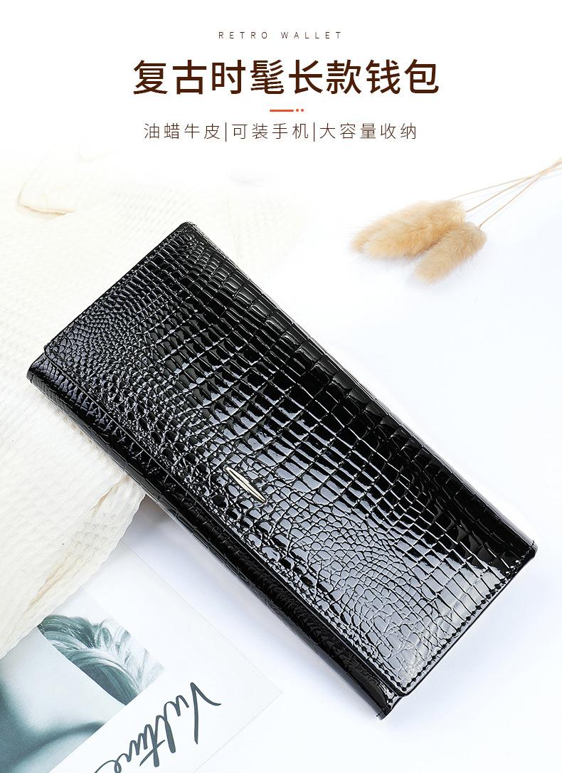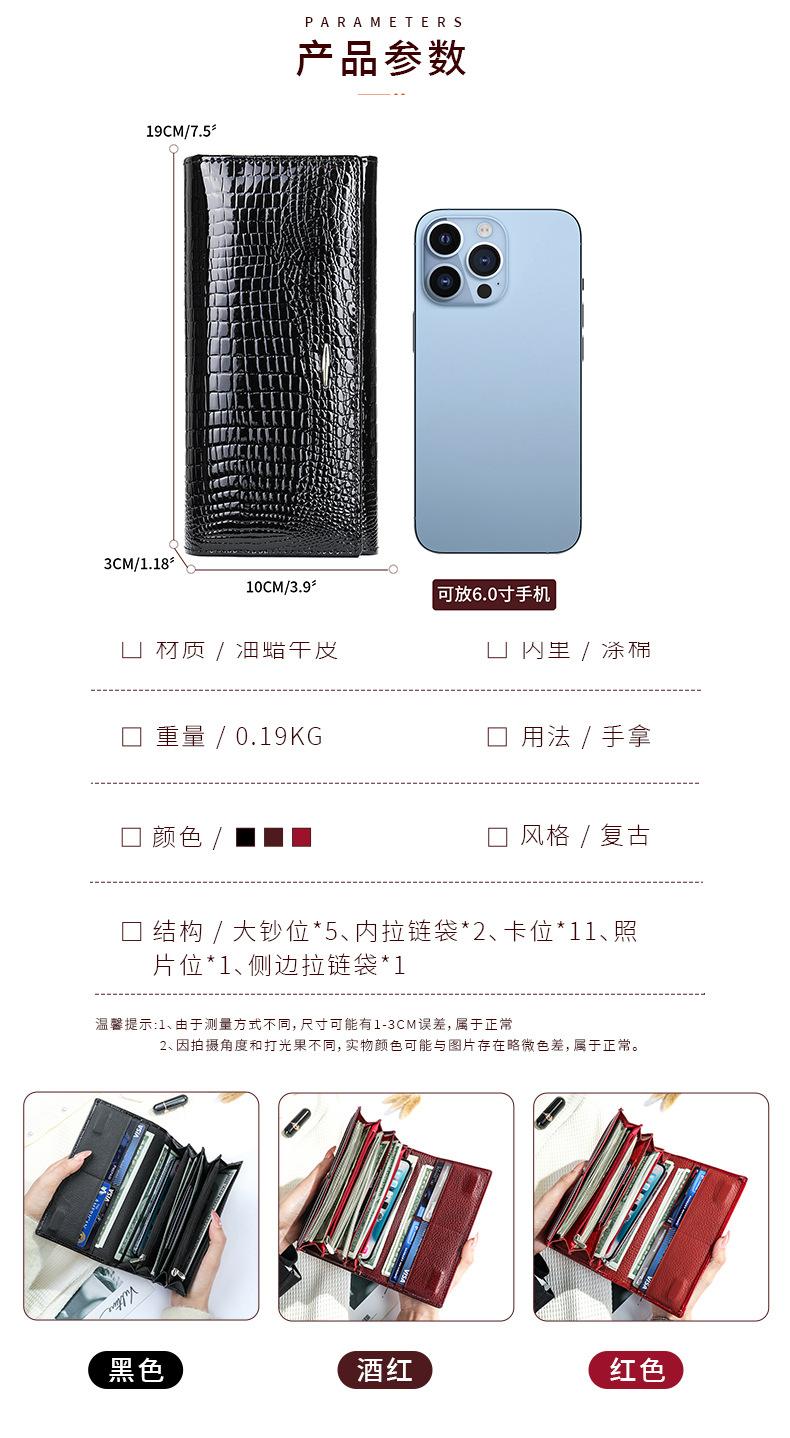 Suministro transfronterizo de billetera larga para hombre con estampado de cocodrilo, ranura para múltiples tarjetas, bolso de mano de gran capacidad, billetera de piel de vaca de primera capa