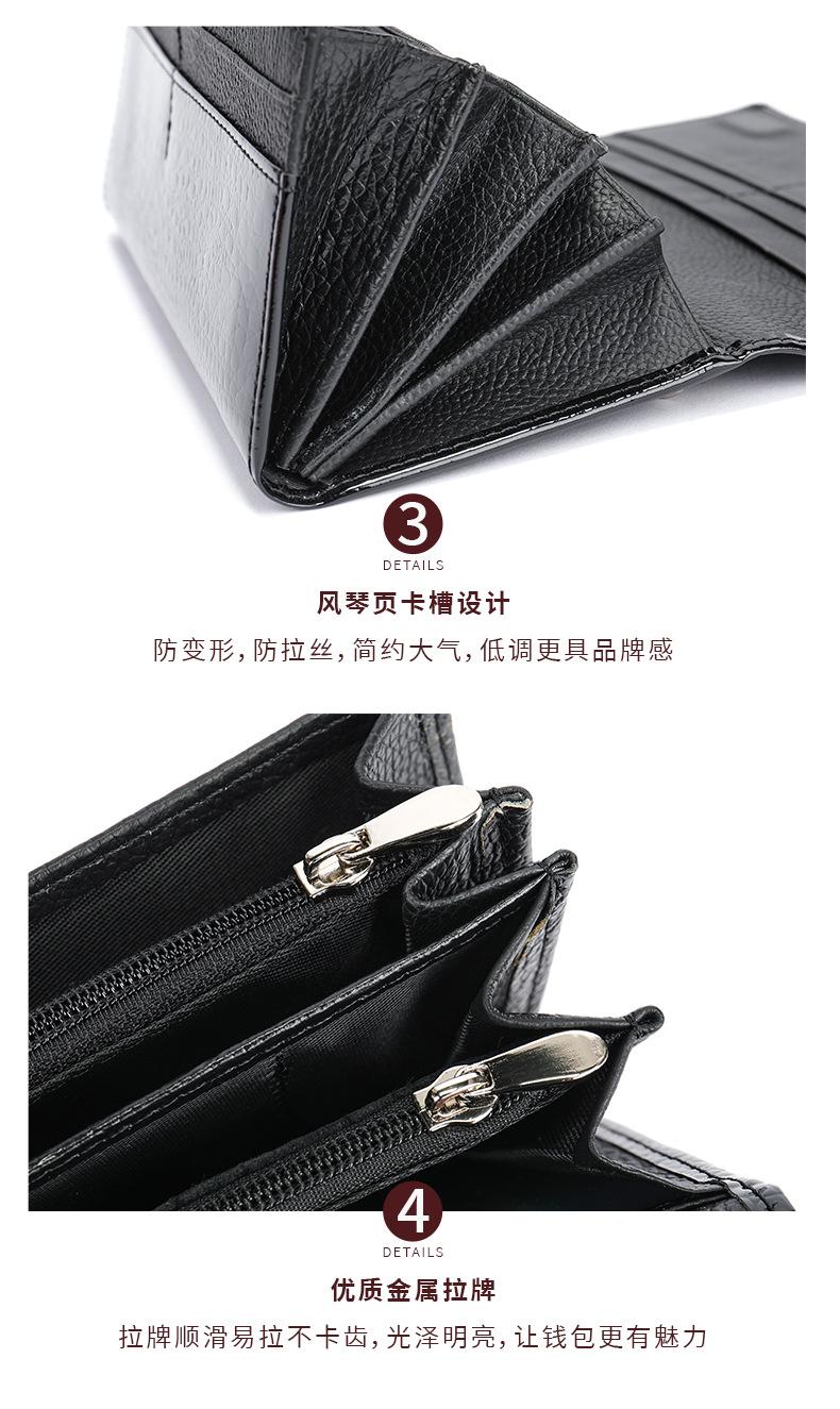 Cartera informal para hombre, billetera corta retro, billetera de cuero genuino, billetera con ranuras para múltiples tarjetas, billetera de cuero al por mayor