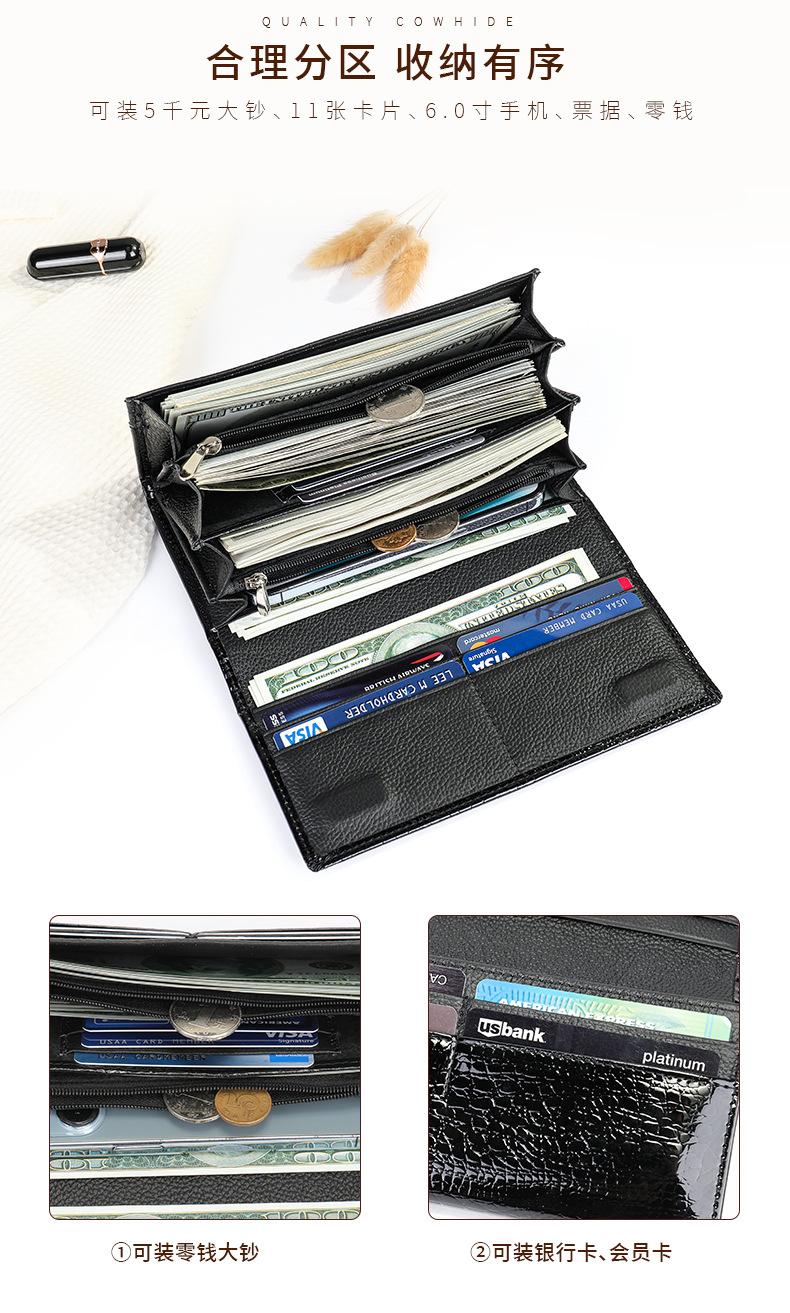 Cartera de hombre con dos bolsillos, billetera larga con ranuras para múltiples tarjetas, bolso de mano de cuero genuino para hombre, bolso de mano, negocio de suministro transfronterizo