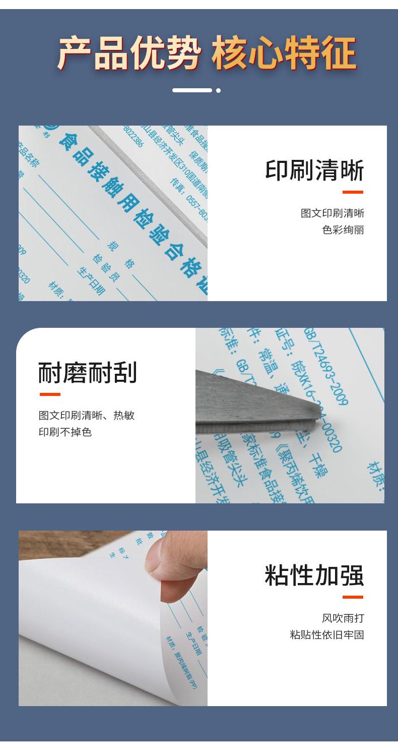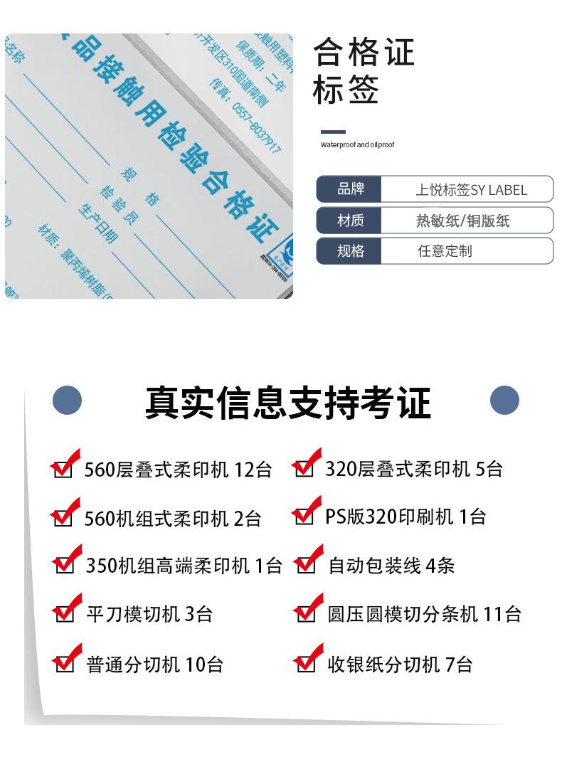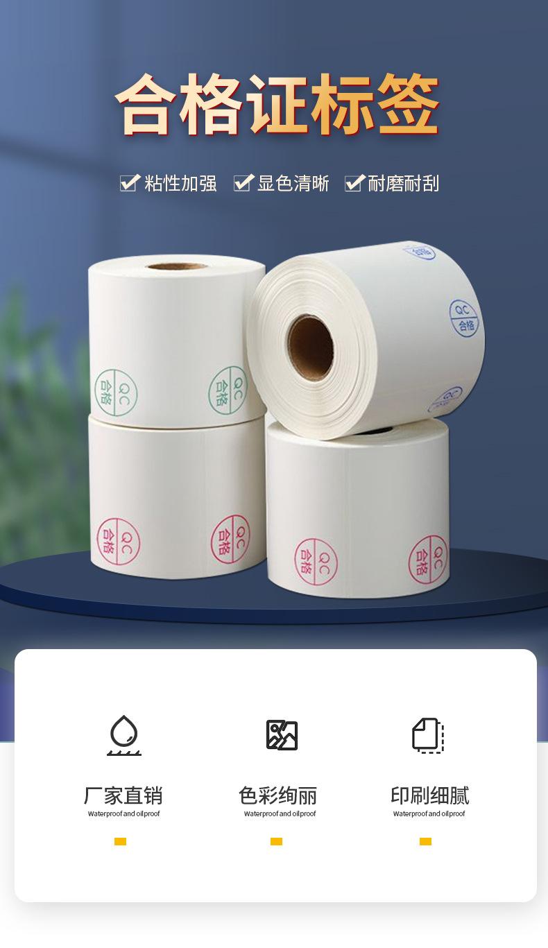 Certificado de data de produção, etiqueta autoadesiva, papel de etiqueta universal, logotipo de marca registrada, impressão em pequenos lotes, adesivo, papel térmico personalizado, papel de impressão térmica, papel de etiqueta térmica, papel térmico de três provas