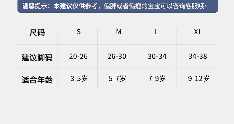 M: 18-20 (tamanho recomendado 26-31 para crianças de 6 a 8 anos)