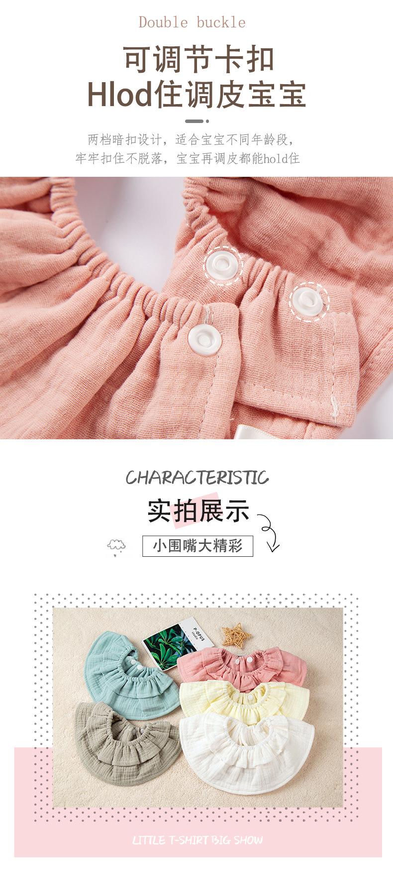 Babero de Gasa Lavada de Alta Densidad de 8 Capas con Broche Trasero en U Babero para Bebé Babero para Baba 100% Algodón Cierre con Broche 21*30CM RMB 2.50 Compre ya | Toalla de algodón puro clase A para bebé absorbente de sudor suave y transpirable gasa de cuatro capas toalla a prueba de sudor almohadilla para la espalda infantil que absorbe la humedad RMB 3.50 Compre ya | Babero para Bebé Babero para Bebé Babero de Algodón Arrugado para Bebé Niña Princesa Niño Recién Nacido Antiregurgitación Bufanda para el Cuello Bufanda Triangular RMB 3.80 Compre ya | ||