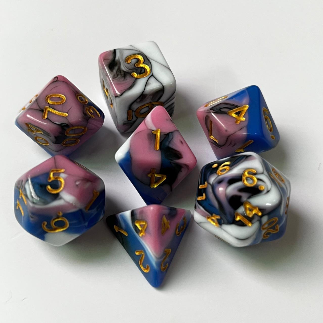 Nome: novos dados de jogo de tabuleiro de dados multifacetados de duas cores Dungeons and Dragons (7 peças em um conjunto)