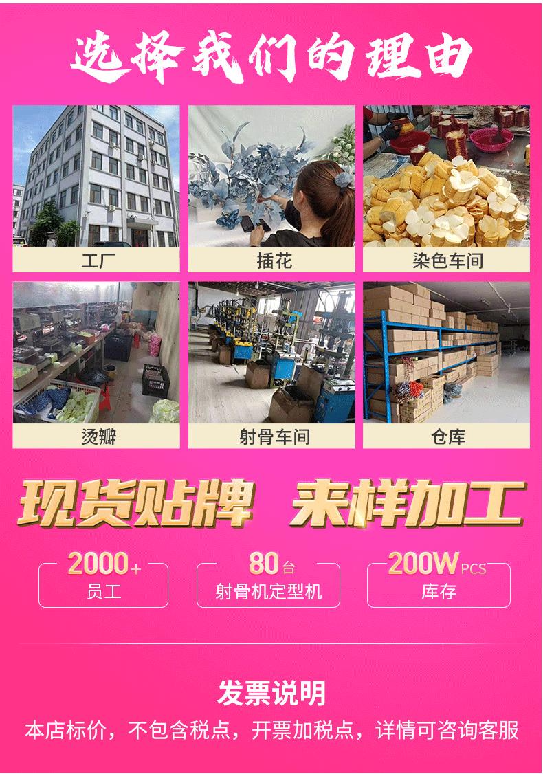 Estimados clientes, nuestra tienda fabrica, vende y vende al por mayor todo tipo de flores y plantas artificiales. En principio, vendemos artículos grandes, pero también ofrecemos muestras. Sin embargo, no se admiten devoluciones ni cambios de productos de muestra. Si compra solo uno o dos ejemplares de cada tipo, o si elige comprar uno o dos ejemplares de varios tipos, se considerará una muestra. No se aceptan reembolsos. Le recomendamos leer atentamente antes de realizar un pedido.