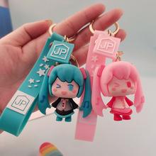 | Chaveiro de casal de PVC linda menina tridimensional chaveiro de silicone macio Hatsune Miku anime pingente bidimensional |