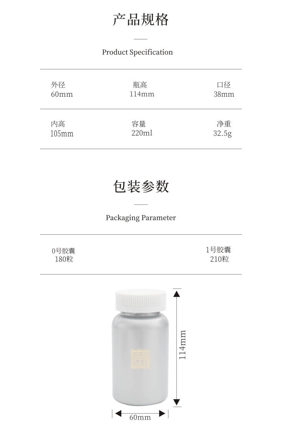 | B17-220 | 60x114mm | 38 mm | 105mm | 220ml | |