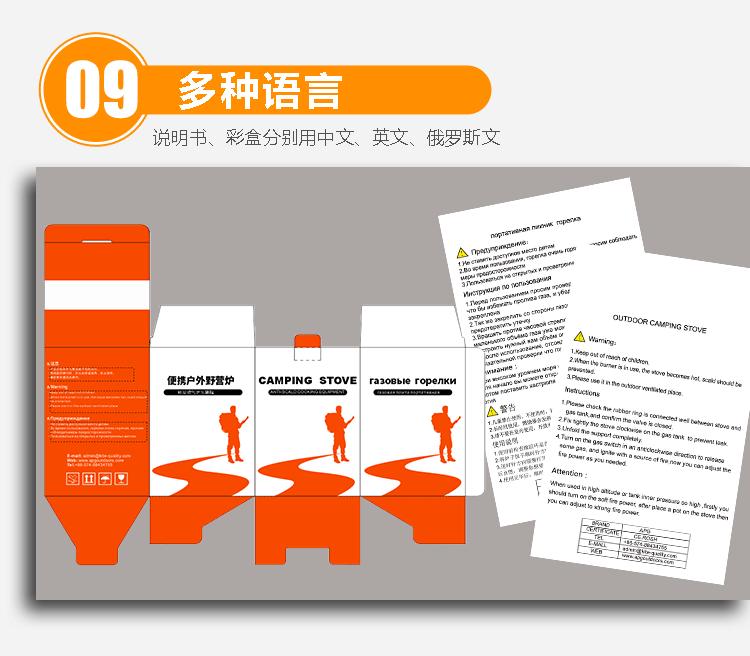 9. Conteúdo do produto: produto, manual em inglês, russo e chinês, saco retrátil
