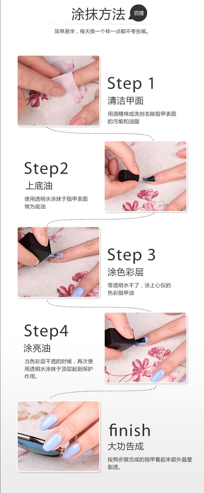 lembrete amigável: As matérias-primas importadas de esmaltes à base de óleo são rigorosamente inspecionadas de acordo com o processo de inspeção de mercadorias, que é mais estável e seguro; alguns comerciantes orientam unilateralmente os consumidores a acreditarem que o esmalte à base de água ou o gel para esmalte não têm odor e são mais ecológicos, o que é uma falácia. Depois de tantos anos de desenvolvimento, o esmalte à base de óleo tem algum odor, mas comparado ao esmalte à base de água e ao gel de esmalte, o esmalte à base de óleo é mais estável, mais saudável e mais ecologicamente correto. Também é conveniente remover esmalte e mudar de cor e fácil de operar!
