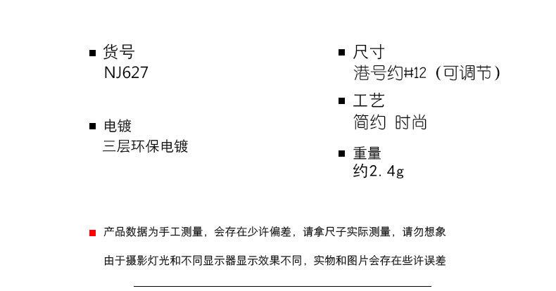 Por ser produzido e vendido no atacado pela fábrica de nossa empresa, é necessária muita mão de obra para inspecionar e distribuir mercadorias, e o lucro é baixo. Recomenda-se que os clientes misturem um pequeno número de lotes para verificar os estilos dos produtos antes de fazer pedidos em grandes quantidades e, em seguida, prossigam com a compra em grandes quantidades. (Pequenos problemas como pequena sujeira e fricção não são problemas de qualidade. As joias feitas à mão terão vestígios de artesanato, então os perfeccionistas devem fazer o pedido com cuidado).