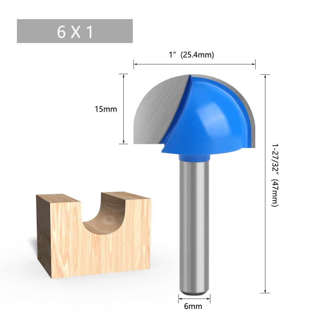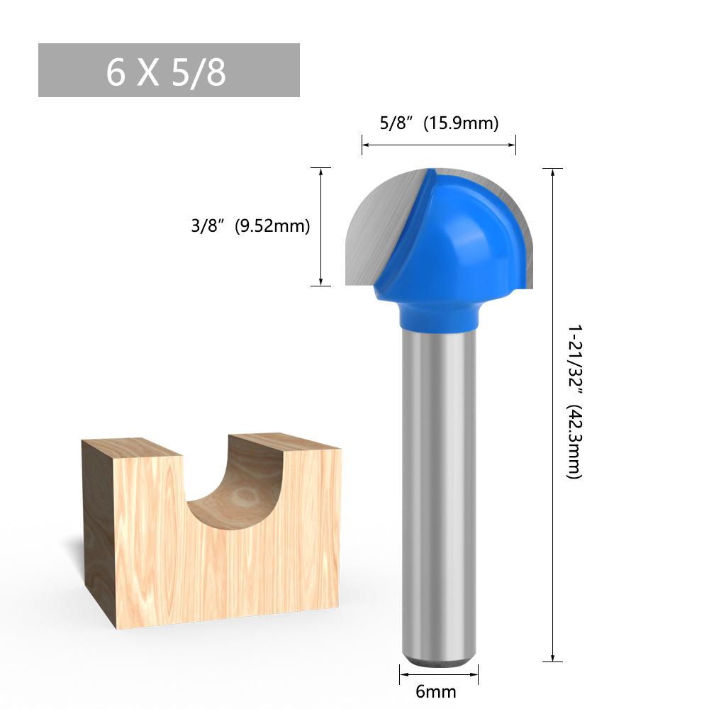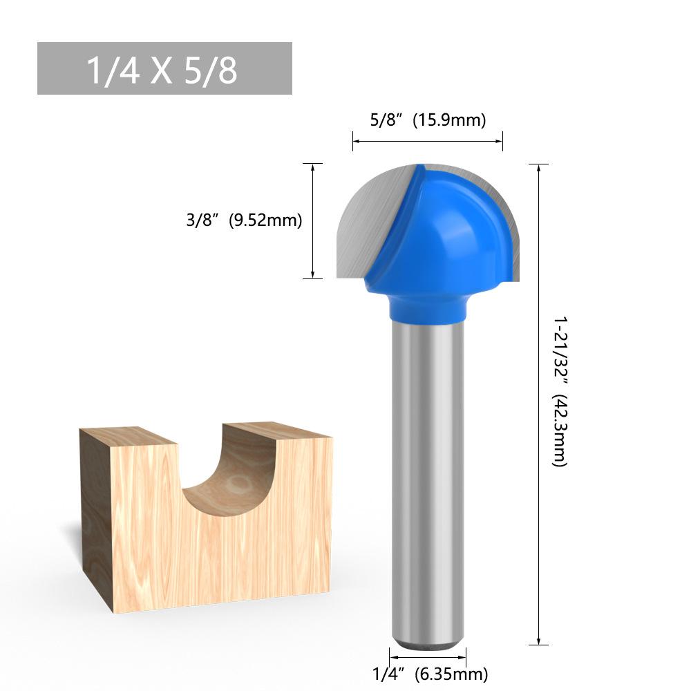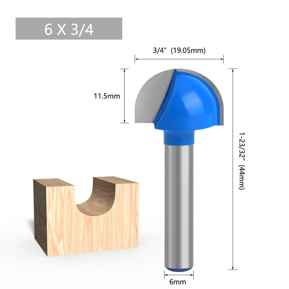Los mangos de las fresas para carpintería incluyen: 3 mm, 6 mm, 1/4" (6,35 mm), 8 mm, 12 mm, 1/2" (12,7 mm)