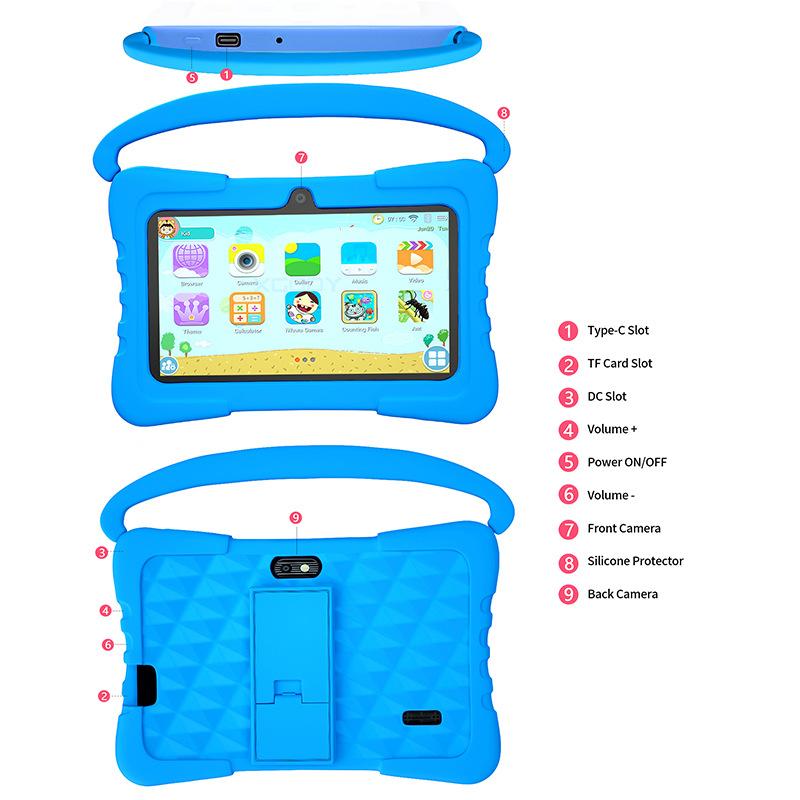 * Tarjeta SD (TF): Soporta una tarjeta micro SD para almacenamiento de datos. Hasta 128GB de almacenamiento expandible. (La tableta no contiene una tarjeta de memoria SD)